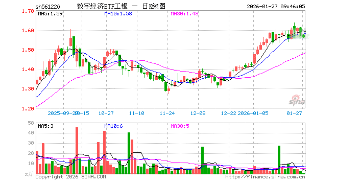 数字经济ETF工银(561220)业绩比较基准为中证诚通国企数字经济指数收益率,管理人为工银瑞信基金管理有限公司,基金经理为史宝珖,成立(2025-05-21)以来回报为57.66%,近一个月回报为11.83%。