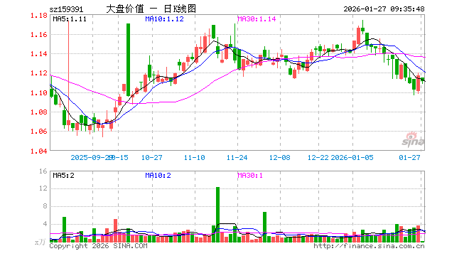 1月27日,大盘价值ETF博时(159391)开盘跌0.18%,报1.115元。大盘价值ETF博时(159391)重仓股方面,中国平安开盘涨0.27%,招商银行涨0.11%,美的集团涨0.07%,兴业银行涨0.11%,工商银行涨0.00%,农业银行涨0.58%,伊利股份涨0.04%,交通银行涨0.15%,格力电器涨0.08%,中国神华涨0.02%。