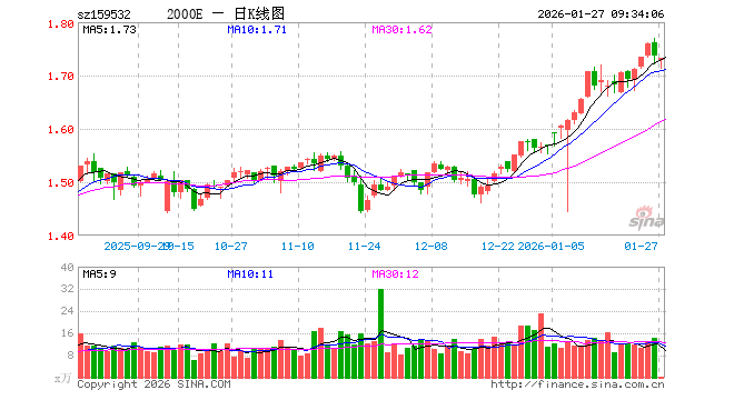 1月27日,中证2000ETF易方达(159532)开盘跌0.46%,报1.728元。中证2000ETF易方达(159532)重仓股方面,亚太股份开盘跌0.47%,奕东电子跌0.78%,招金黄金跌0.14%,大恒科技跌0.12%,华昌达跌0.64%,华联控股涨0.16%,众合科技涨0.00%,斯莱克跌0.98%,鼎通科技涨2.86%,成都先导涨0.80%。
