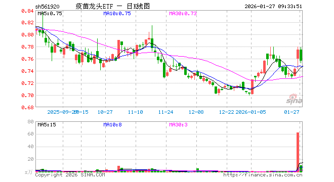 1月27日,疫苗龙头ETF(561920)开盘涨0.00%,报0.775元。疫苗龙头ETF(561920)重仓股方面,智飞生物开盘跌3.07%,沃森生物跌3.38%,万泰生物涨0.00%,辽宁成大涨0.24%,康泰生物跌1.05%,甘李药业涨0.45%,特宝生物涨0.28%,山东药玻跌0.33%,华兰生物涨0.00%,复星医药涨0.78%。