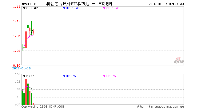 科创芯片设计ETF易方达(589030)业绩比较基准为上证科创板芯片设计主题指数收益率,管理人为易方达基金管理有限公司,基金经理为李栩,成立(2025-12-31)以来回报为6.00%。