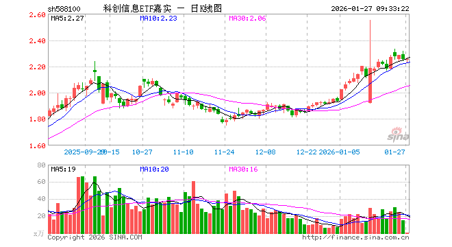 科创信息ETF嘉实(588100)业绩比较基准为上证科创板新一代信息技术指数收益率,管理人为嘉实基金管理有限公司,基金经理为张钟玉,成立(2022-05-18)以来回报为125.20%,近一个月回报为17.38%。