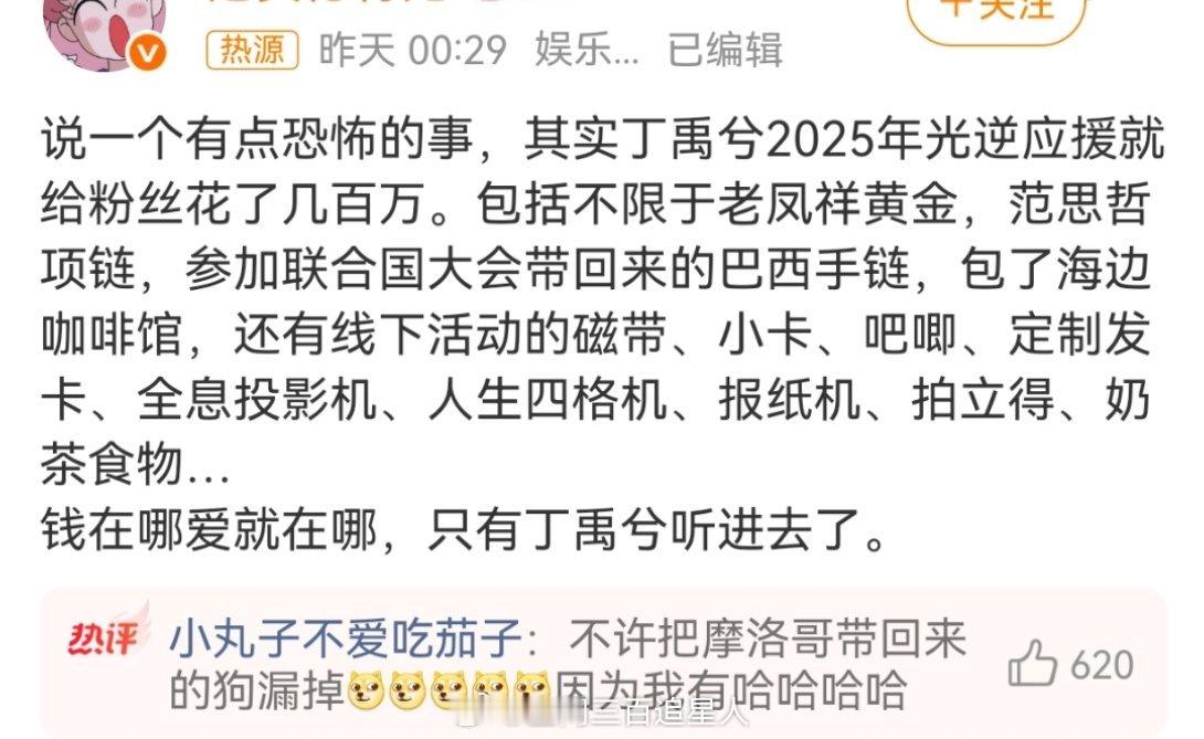 看到有人说“丁禹兮是女明星海棠的氪金大粉吗?”,好像还真是这么回事,事已至此兮棠99丁禹兮 钱在哪爱就在哪