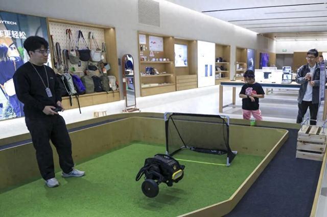 1月5日,顾客在深圳市南山区的INNO100全球创新旗舰店观看机器人产品演示。新华社记者毛思倩摄