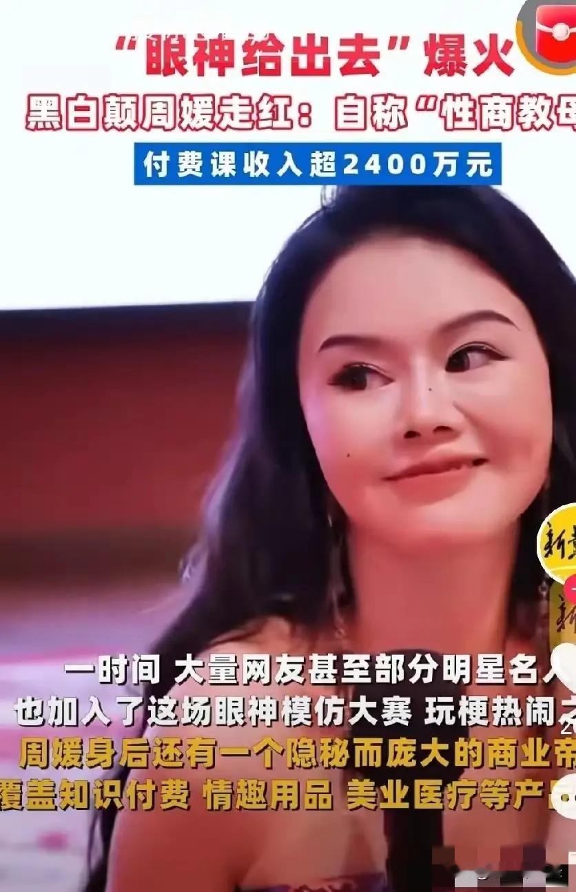 都说女人钱好赚,这话一点不假,看人家周媛,几个眼神,几个“搔首弄姿”的动作,居然狂赚2400万,重点不是她的教学多么低俗不上台面,而是有那么多女人都愿意花钱去上课,说明一个什么问题呢? 这些女人内心还是太缺爱了,始终想要得到男性的认可,甚至不惜将女性物化,矮化,一切都为了讨好男人来证明自己的价值,这是一种对女性的侮辱! 都说有需求才有市场,男人内心真的吃这一套吗? 就这三脚猫功夫,居然敢自称“中国性商教母”,堂而皇之的称她的教学是提高女性魅力,了解了她的教学内容才知道她被封的不冤,甚至是被封的太晚了。