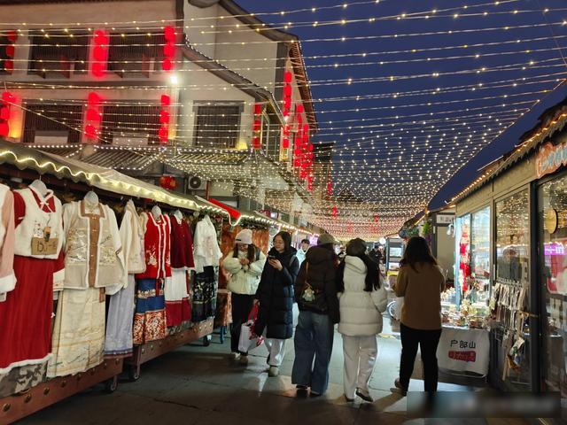 春节临近,仅剩不到一个月,你感受到年味儿了吗?近日,中国商报记者来到户部山回龙窝历史文化街区,比夜市美食的烟火气更先扑面而来的,是月光集市里的新年氛围:红灯笼、马年饰品、迎春汉服……据当地市民介绍:“户部山算是徐州市区年味儿最浓的地方,每年都会举办各种民俗活动。这几年,户部山月光集市已经日常化,春节的时候更是全天所有摊位都营业,非常热闹。”