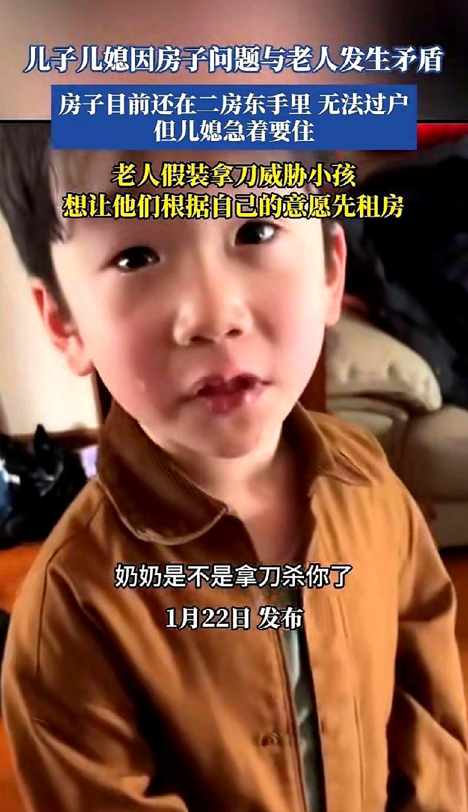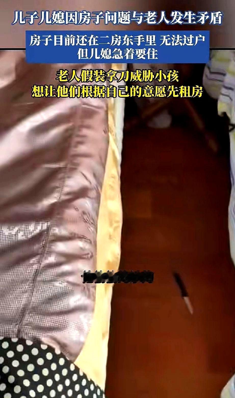 房子的事情,能把一个家庭闹得像过年抢红包一样热闹,到最后才知结果。本以为一家人坐在一起聊聊天就可以了,没想到直接变成了大型惊悚现场——奶奶急了,刀子噌的一下就戳到了孙子的脖子上,整个房间都变得冰凉刺骨起来。 老人想让小辈搬出去住,但是小辈就是不肯走,觉得租房太亏了,二房东那边又办不到过户手续,谁也不愿意退步。没想到口头上斗来斗去就失控了,刀光一出,亲情全部被撕碎,手机拍下的画面比直播更扎心,在地上的一把刀就像是一记警钟一样敲得越响就越没有效果地在屋子里的人耳边响起。 说到底,不是房子分得难看,而是有人脾气比房价还硬,一有事儿就非用极端方式逼迫对方认怂。一旦安全线被踩爆之后沟通就会彻底失灵了,谁也不愿意听那些废话了,只剩下谁能出手更快、压住场面而已。家庭好比炸锅的油条一样,在早晚的时候容易出现事故。 以前人们认为,家里出了问题可以慢慢解决,可是真正到了要用刀的时候就已经晚了。活生生的例子摆在面前,下次再遇到类似的事情时要有一说一地把底线守住,并且把危险挡到门外留点机会看看家人还像不像家人。房子是自己的东西,在做人方面也应该有界限。