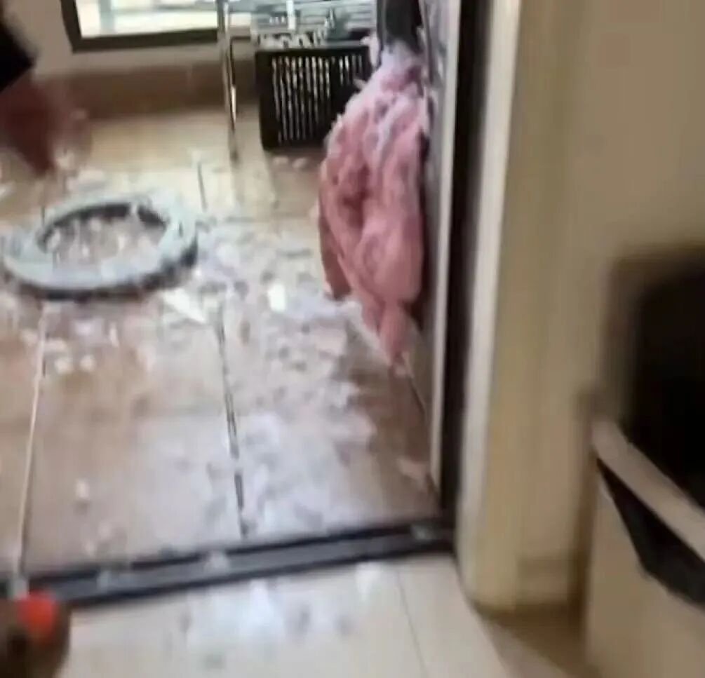 洗衣机的门被直接炸掉