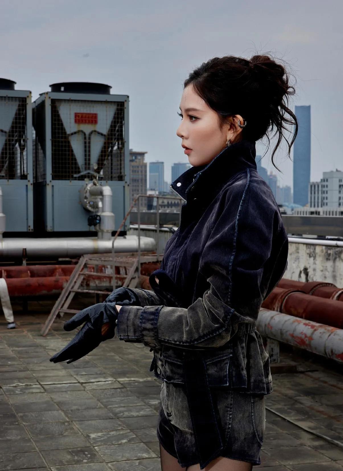 😂 宋妍霏这是把“腿精”焊在身上了吧! 救命!这一身黑丝+皮短裤+皮夹克的组合, 直接把“又美又拽”写在脸上了! 谁看了不说一句姐姐鲨疯了! 天台那套更绝, 做旧工装外套+丸子头, 站在上海外滩背景前, 又野又酷,感觉下一秒就要去拯救世界了! 这身材比例,我直接斯哈斯哈🤤 宋妍霏 腿精本精 暗黑酷飒风