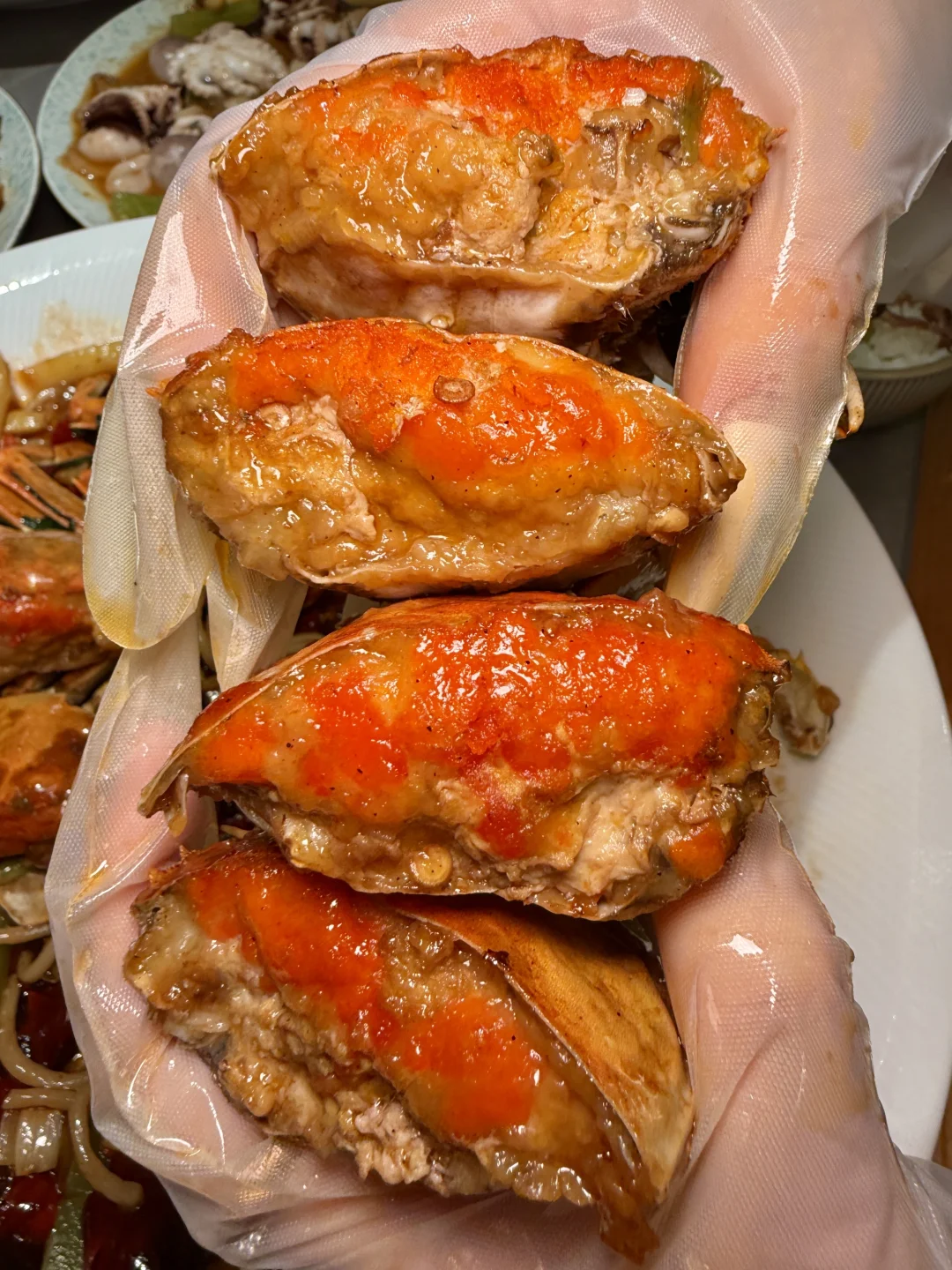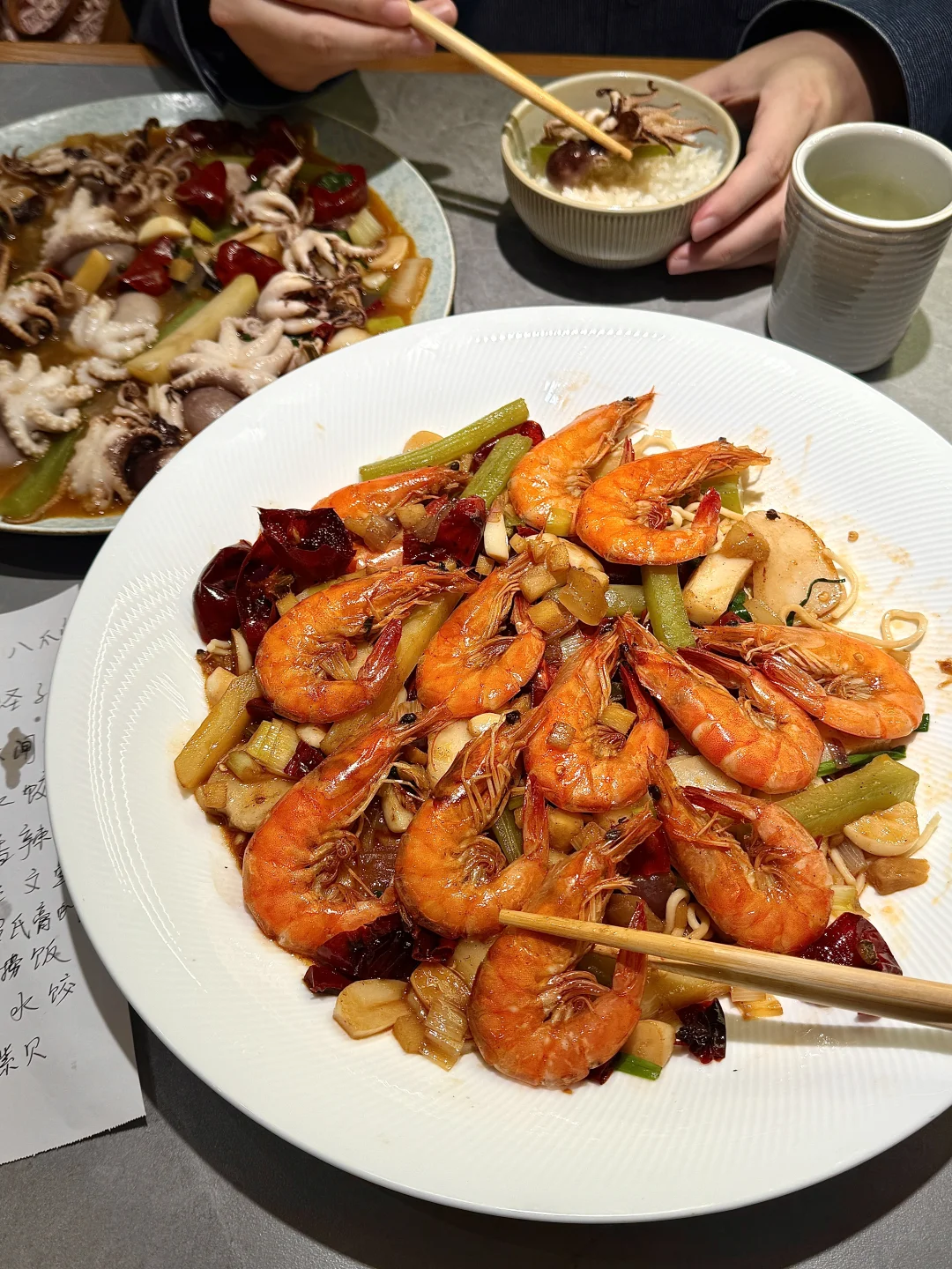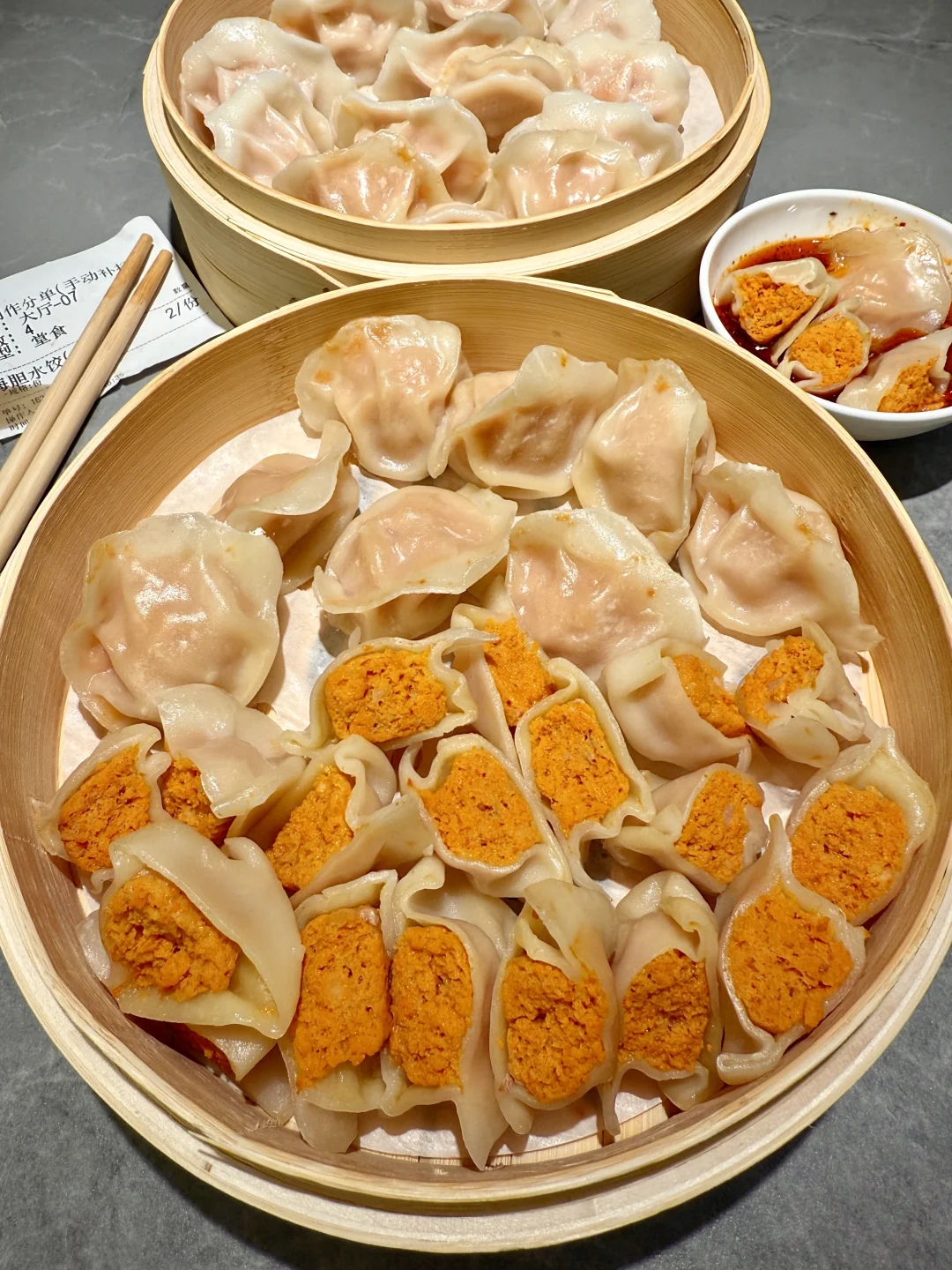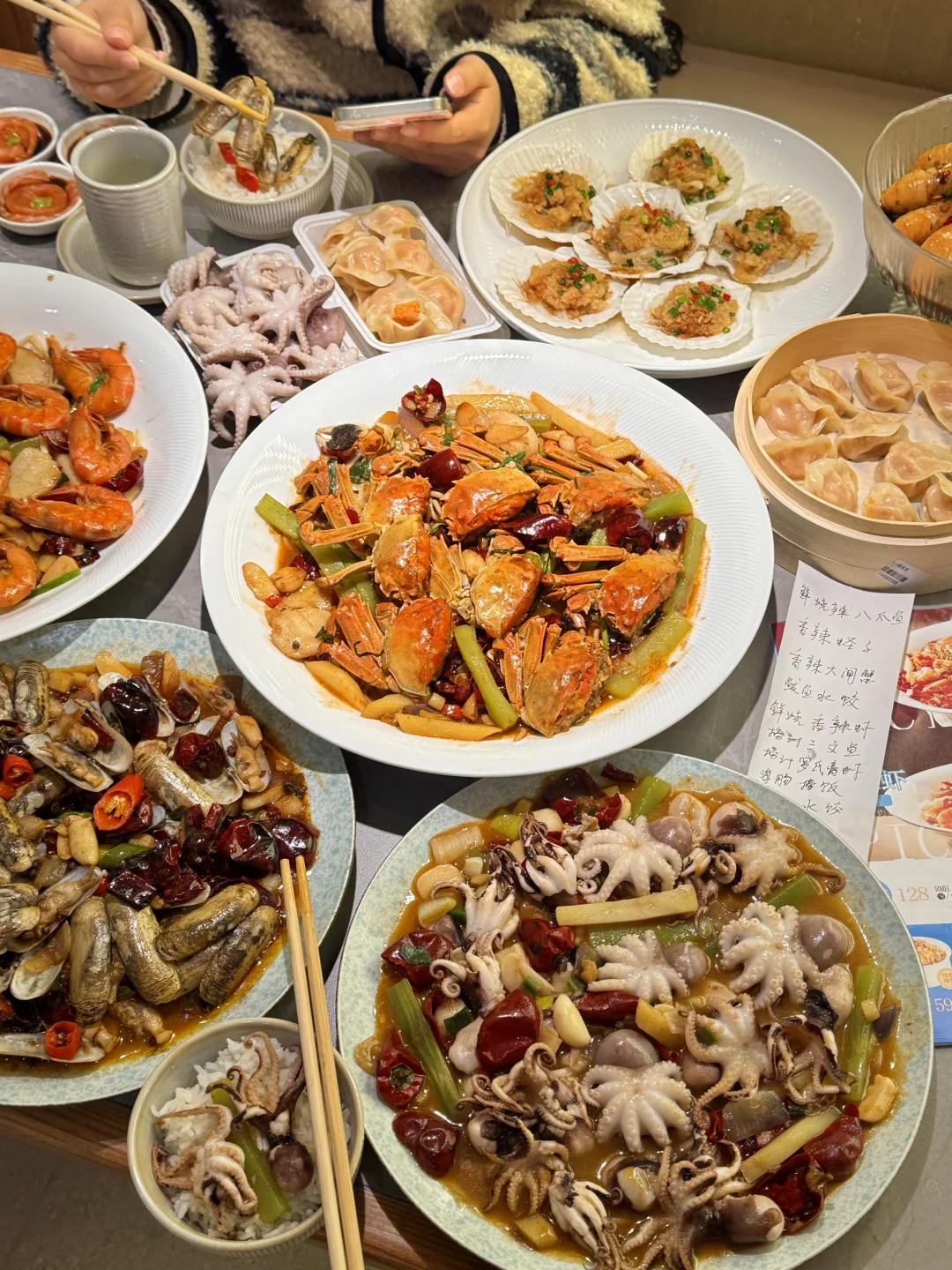 杭州终于开了!!!一周去3次了…吃上了新鲜又好吃的海鲜!种类贼丰富! - ✔️海胆水饺 我敢说这是我吃过前三好吃的!相当鲜甜的海胆水饺! ✔️鲜烧辣八爪鱼 辣炒整只鲜活🐙又有嚼劲还入味!一口一个好不过瘾(确实够辣🥵 ✔️香辣大闸蟹 肥美的蟹黄太诱人了…不愧是七欣天旗下的,做大闸蟹就是专业!那香味谁吃了不迷糊! ✔️海肠捞饭 热乎乎的超大一盆,海肠也给很多!