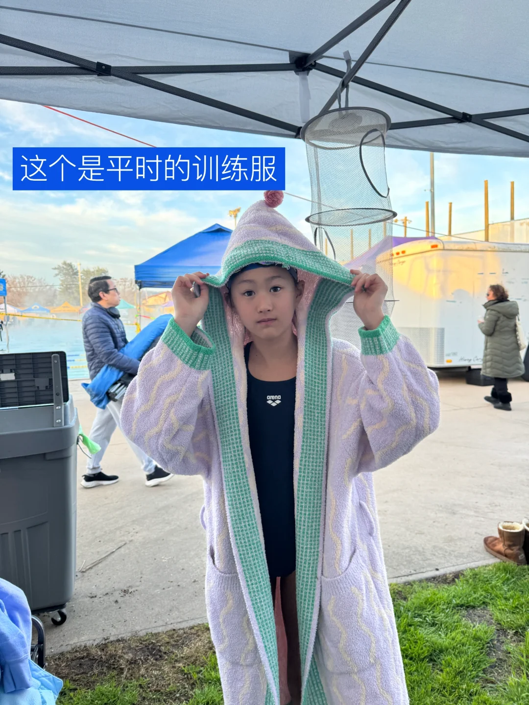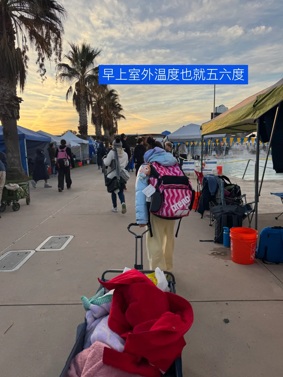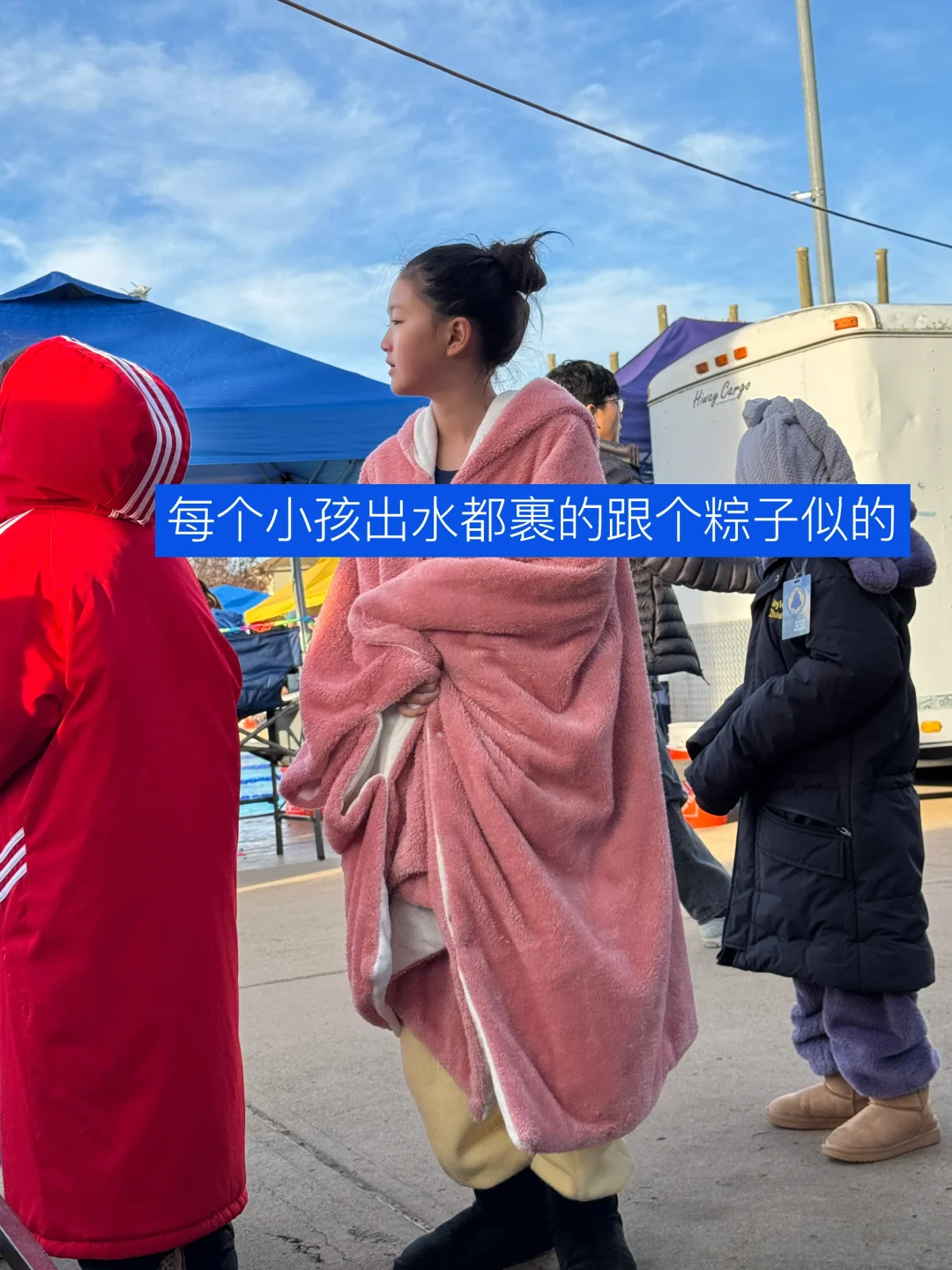 之前去San Ramon比赛被冻成狗,种草了好多泳娃保暖设备,Amazon买了个电加热毯管大用了,在家里充好电可以热半天,尤其早上warm up完室外温度只有五六度的时候确实顶用,还有个电加热暖手宝,泳娃家长可以考虑入一个哈哈哈,Amazon搜什么看照片哈