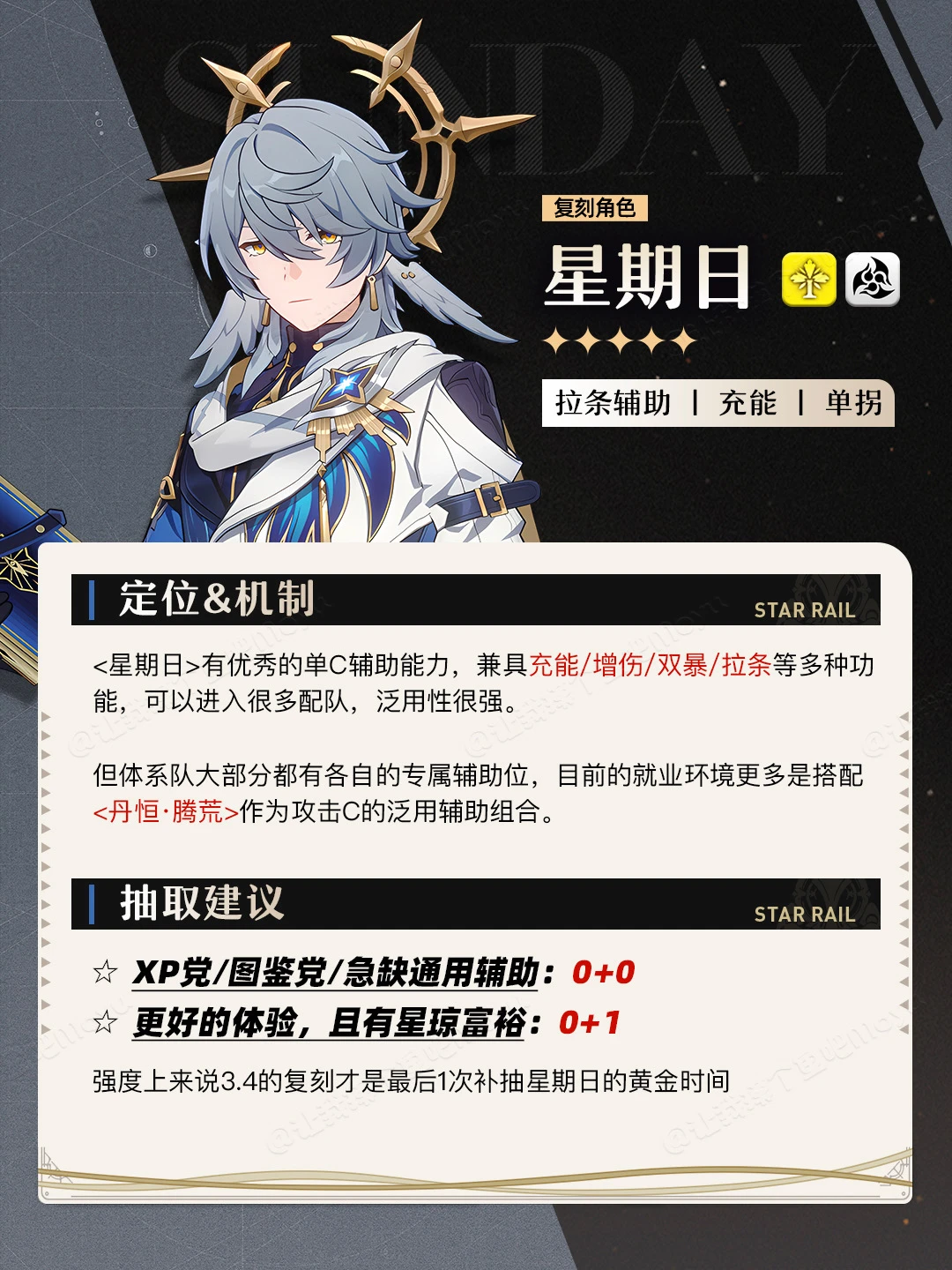 第三期复刻『阿格莱雅&星期日』抽取建议