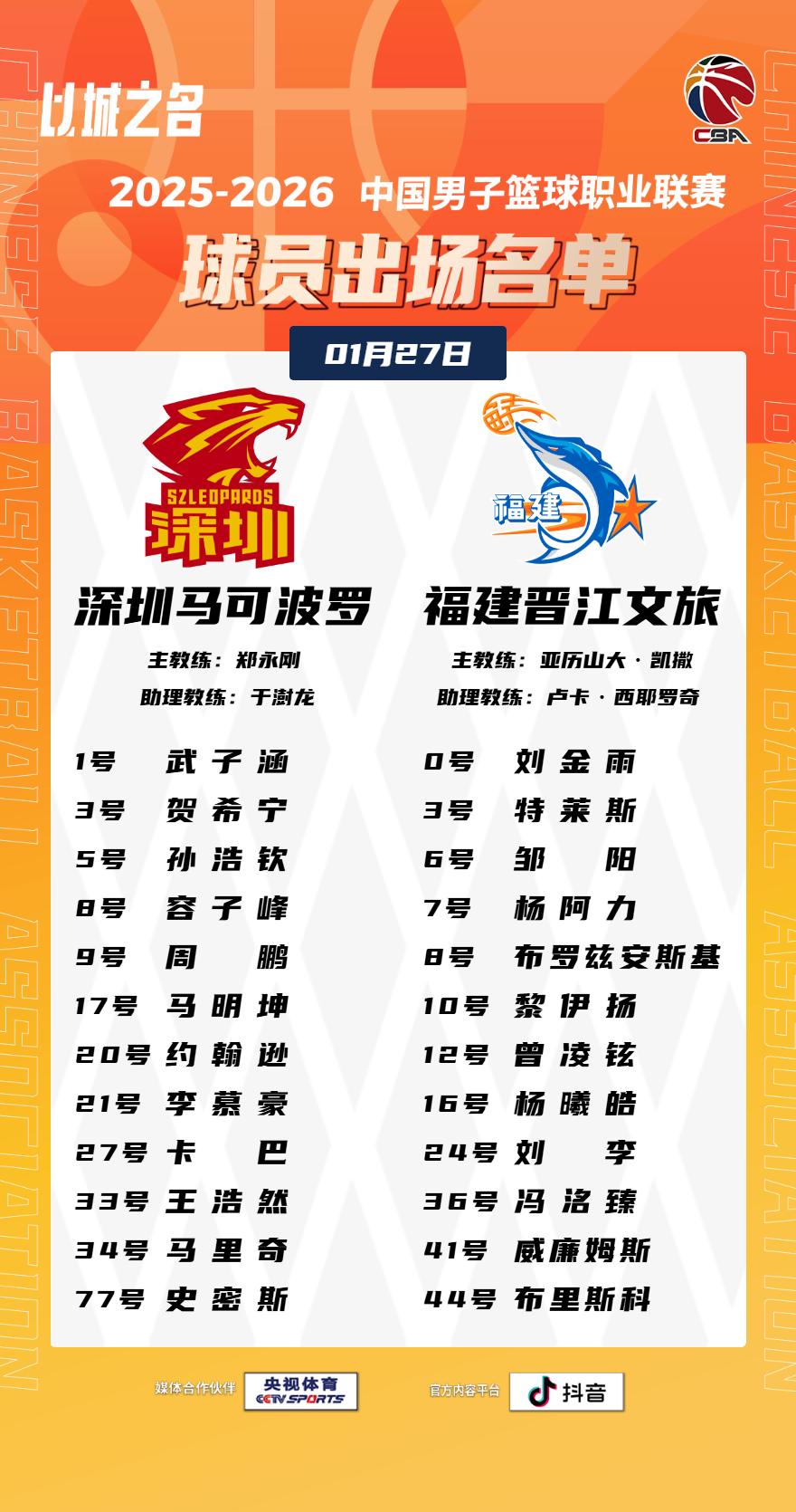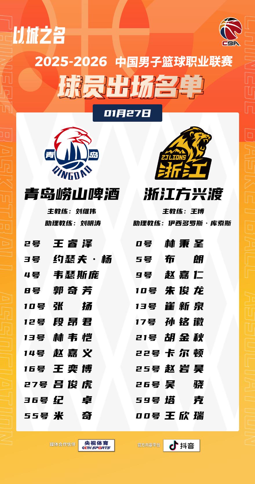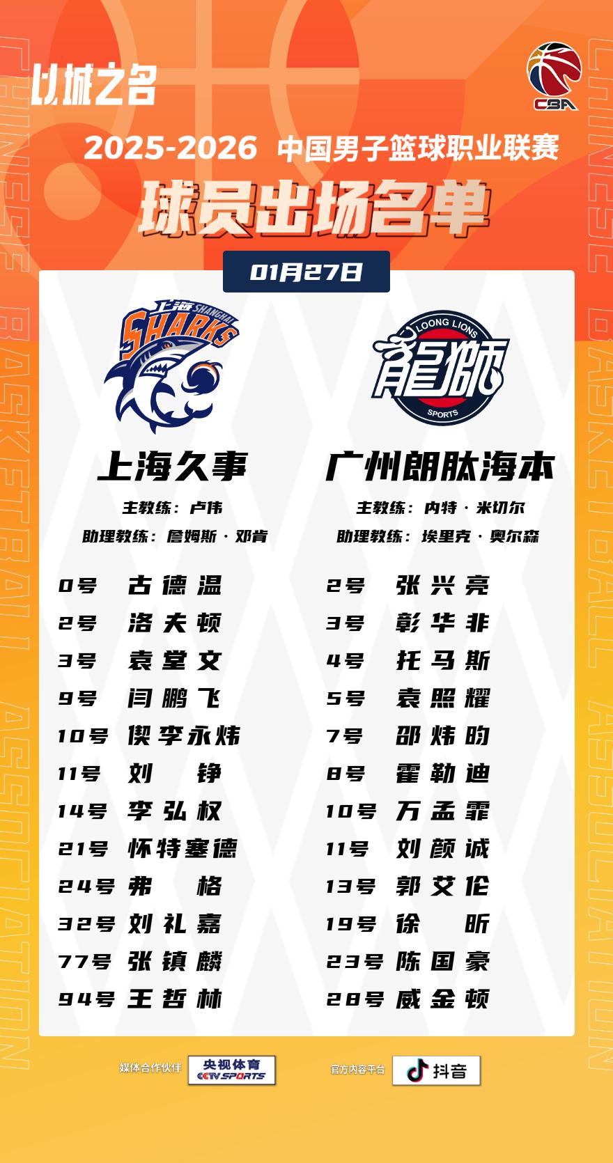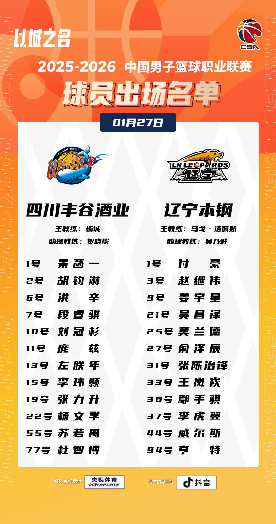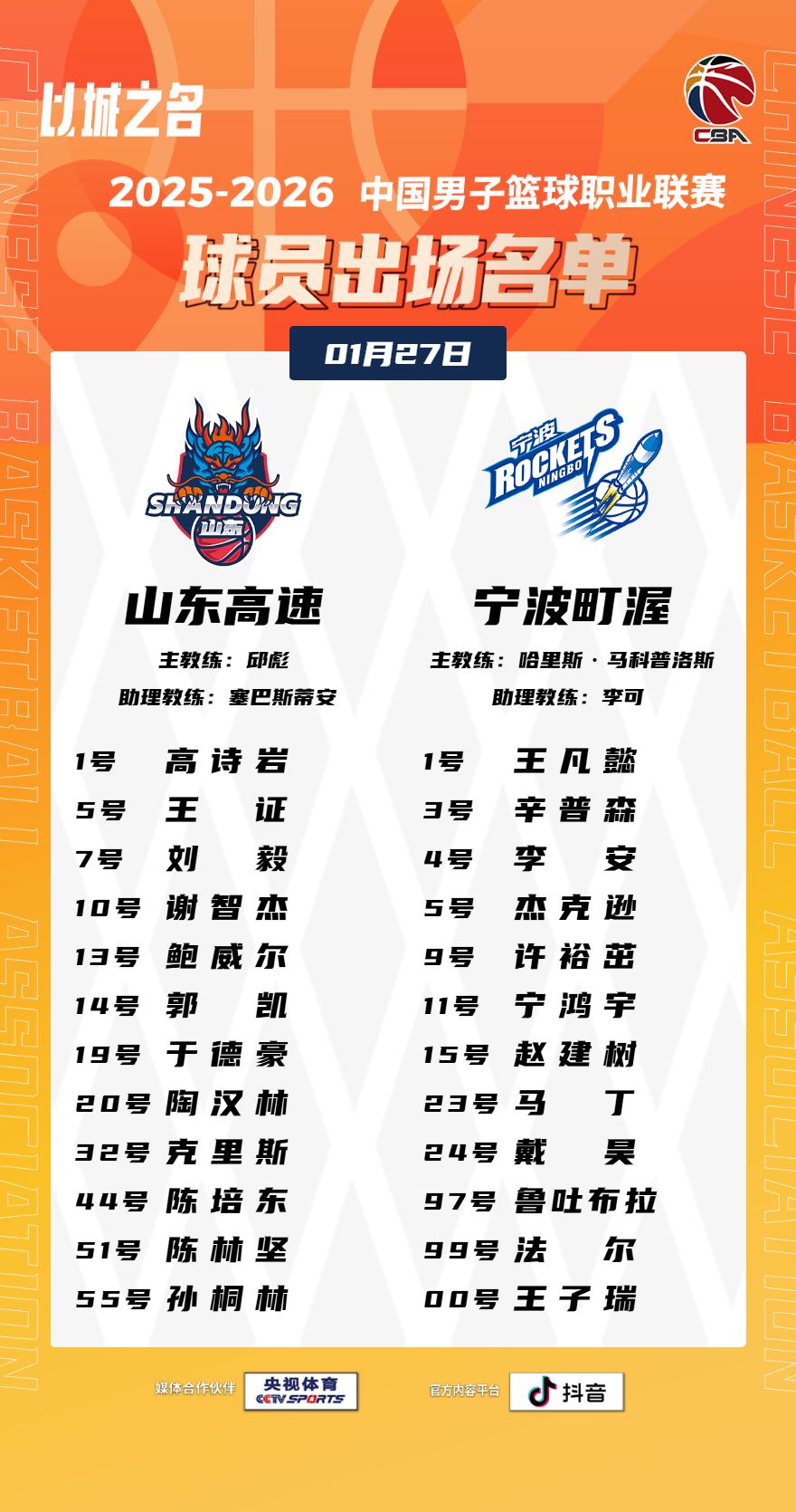 【大名单出炉】2025-2026赛季CBA联赛常规赛第二十轮今晚继续进行,7场比赛将在19:35同时跳球,敬请期待!CBA联赛 以城之名