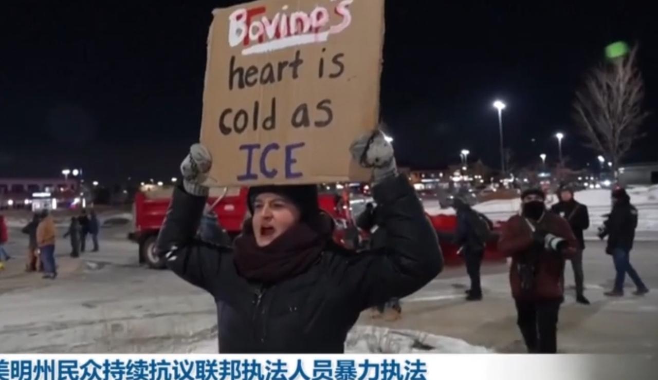 在寒冷的美国明尼苏达州,抗议的怒火仍在持续燃烧。民众举着“ICE滚出明尼阿波利斯”的标语走上街头,抗议联邦执法人员的暴力执法。夜色中,防暴警察严阵以待,与民众形成对峙,街头的纪念花束则静静诉说着人们对正义的渴求,这场冲突折射出美国社会深层的矛盾与撕裂。