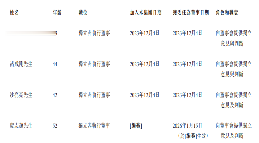 董事会将由九名董事组成,包括四名执行董事、一名非执行董事及四名独立非执行董事。下表载列有关董事之若干资料。该公司董事任期为三年,任期届满后可连任。根据中国相关法律法规,独立非执行董事连续任职不得超过六年。