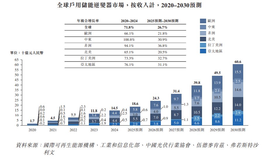 作为户用储能系统的重要组成部分,全球户用储能逆变器市场在光伏、储能及充电解决方案的整合部署驱动下持续扩张。市场规模将由2020年的人民币17亿元增长至2024年的人民币145亿元,复合年增长率达71.8%。预计市场规模将由2025年的人民币186亿元持续增长至2030年的人民币606亿元,对应复合年增长率为26.7%。