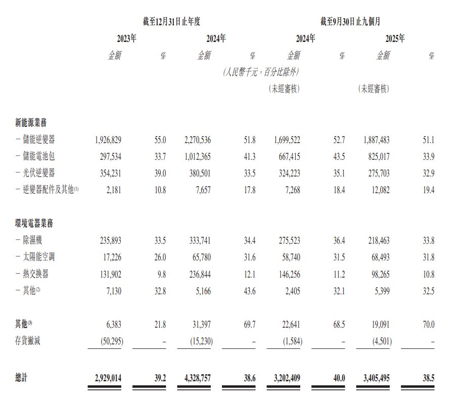 德业股份的核心增长领域为新能源业务,聚焦于储能逆变器、光伏逆变器、储能电池包产品,同时,德业股份在除湿机、太阳能空调、热交换器等环境电器业务领域长久深耕,战略多元化的产品组合带来了业务的增长与韧性。