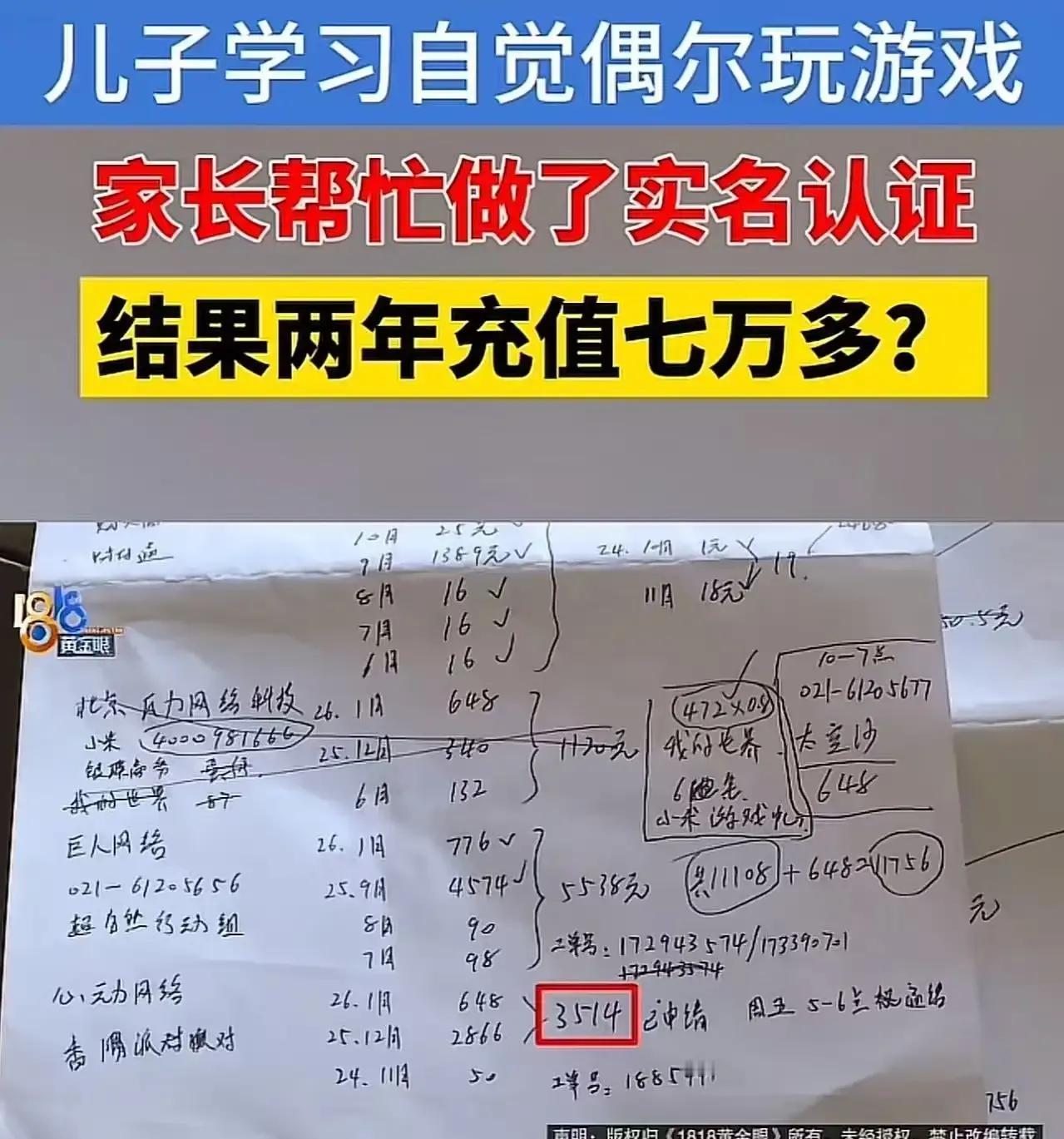 孩子偷偷充值游戏,家长竟然两年后才发现!杭州一位13岁男孩用母亲手机,两年内竟然偷偷充值了7万,这究竟是怎么回事呢? 据了解,这位男孩平时经常用母亲的手机玩游戏,而母亲由于工作繁忙,并未过多关注。直到最近,母亲才发现自己的账户里少了7万块钱,一查才知道,原来是孩子偷偷充值了游戏。家长愤怒不已,立刻联系游戏平台要求退款。然而,平台却对此表示质疑,称凌晨还在充钱,这真的是孩子操作的吗?这一事件引发了网友们的热议。有网友表示,家长监管不力,两年了才发现,现在出来要退钱,那以后所有人都这样好了。但也有网友认为,孩子毕竟还小,缺乏自控能力,家长应该承担一定的责任,但平台也应该加强监管,避免类似事件再次发生。这起事件不仅给家长敲响了警钟,也引发了社会对于未成年人游戏充值的关注。 孩子偷偷充值游戏,不仅让家长损失惨重,也暴露了家庭教育和平台监管的问题。对于这起事件,你有什么看法呢?快来评论区留言,一起探讨如何避免类似事件再次发生吧!孩子玩手机游戏 游戏充值陷阱