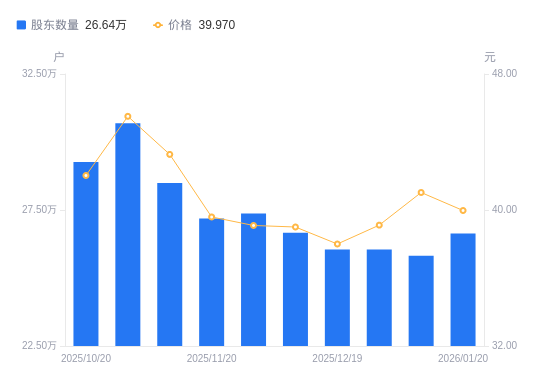 日期A股户数(户)流通A股户均持股数(股)户均持股市值(万元)2025-12-192604706664.1625.322025-12-102666426509.9025.392025-11-282737186341.6124.792025-11-202718776384.5525.282025-11-102849156092.3926.362025-10-313068815656.3125.742025-10-202926405931.5724.932025-10-103153415504.5624.432025-09-303250725339.7824.932025-08-291920408995.7132.81