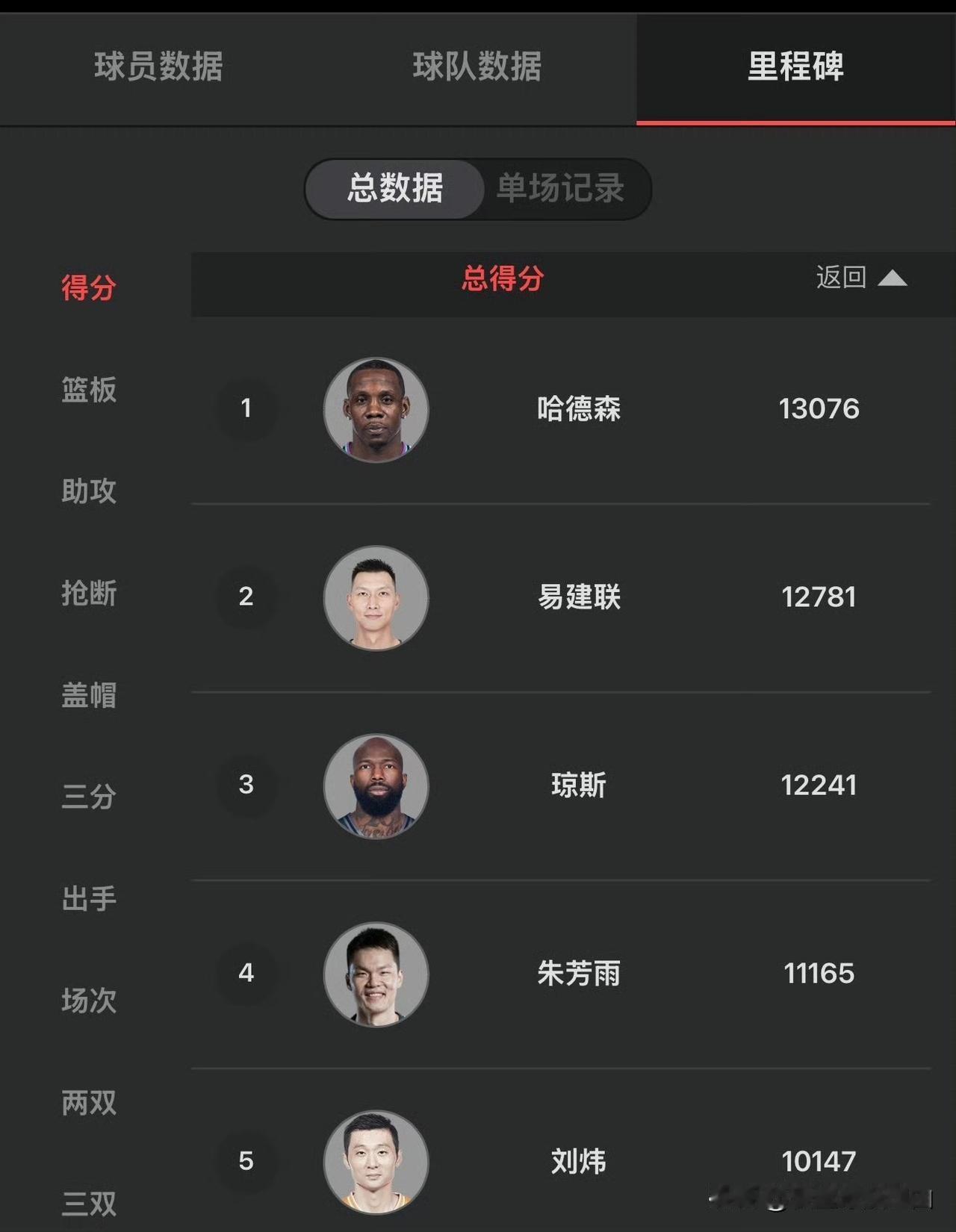 CBA历史第六位万分先生诞生!王哲林达成生涯10000分里程碑。 排在他前面的是哈德森、易建联、琼斯、朱芳雨和刘炜,这赛季王哲林还有机会超越刘炜,在总得分榜排到第五位。