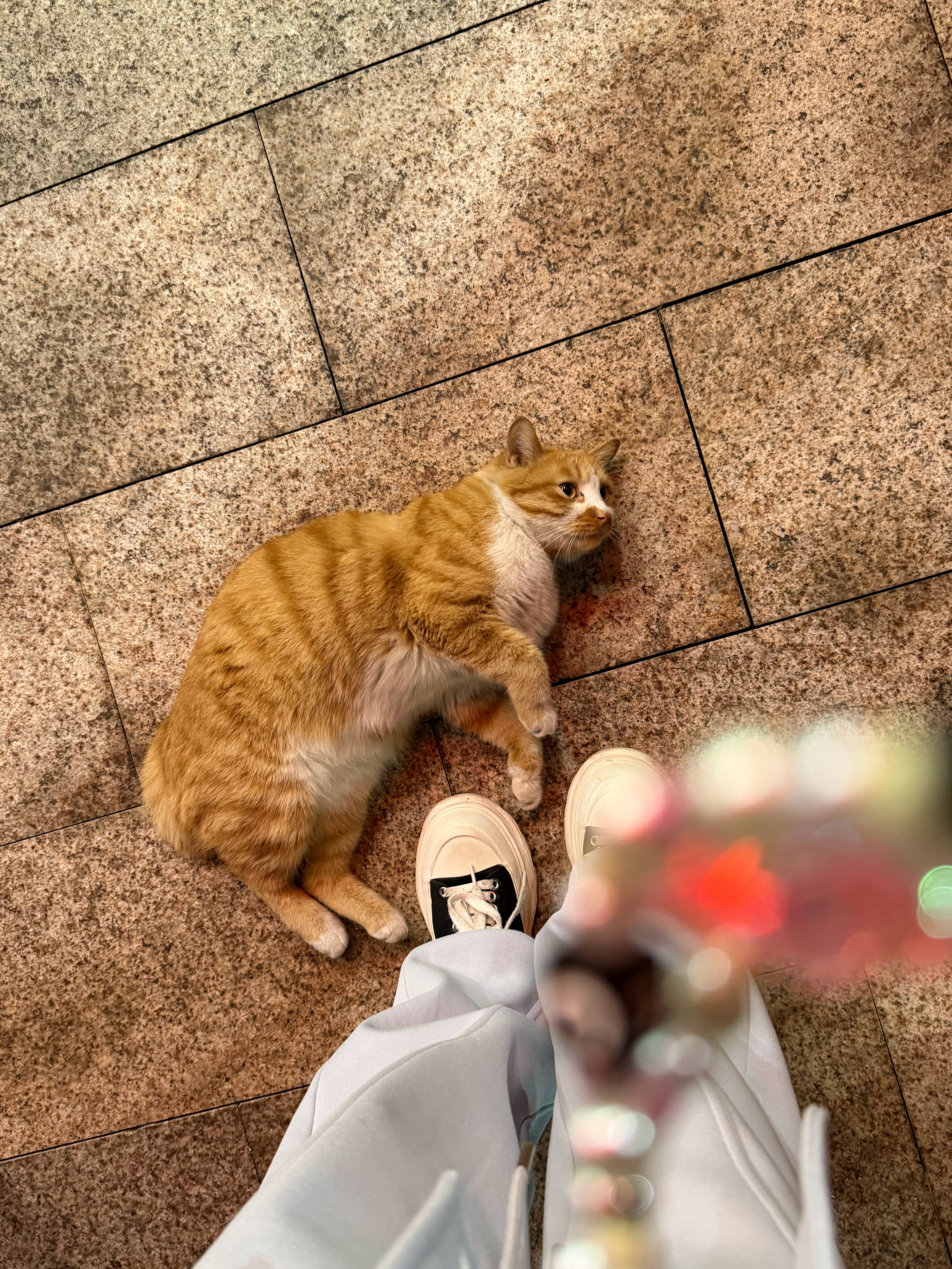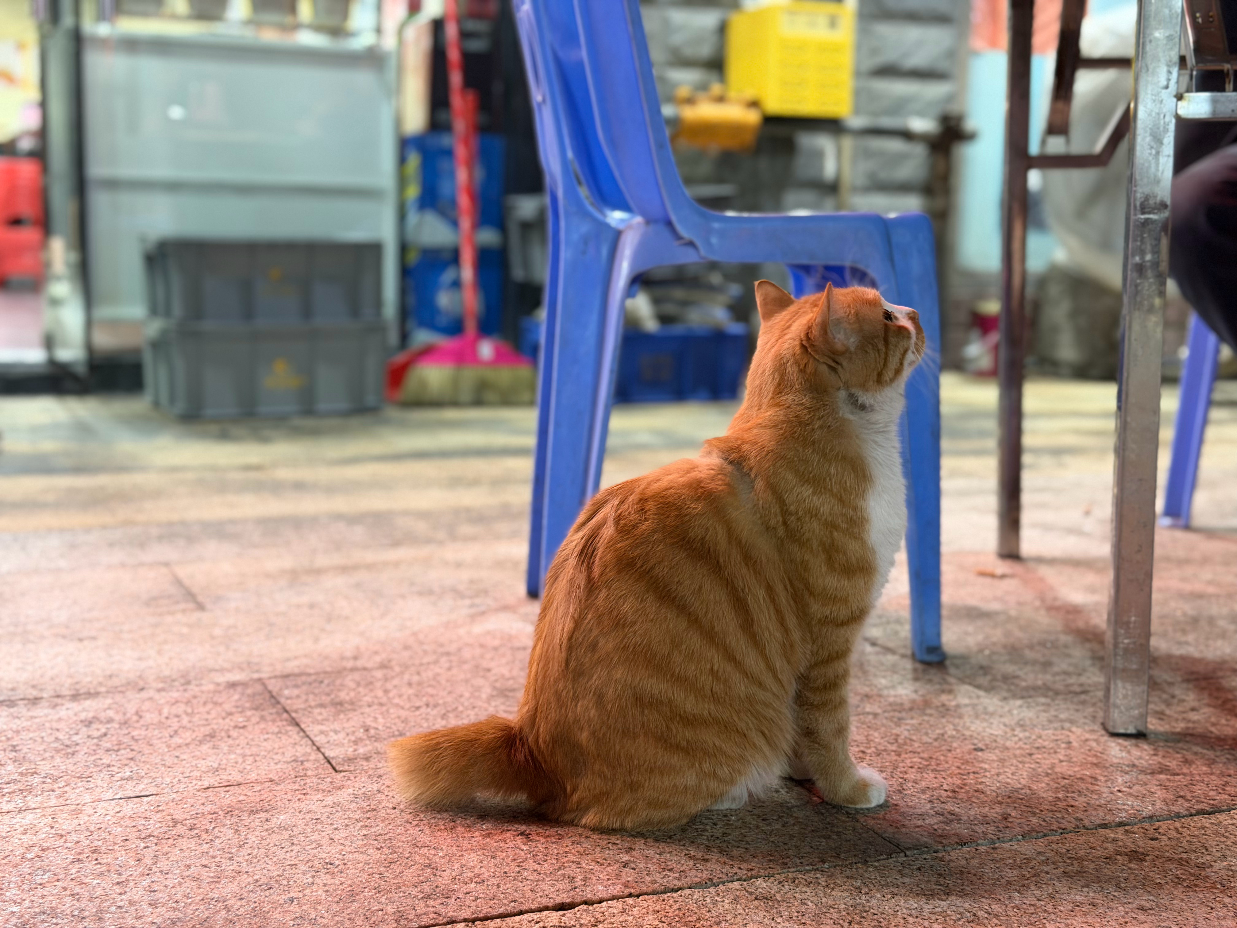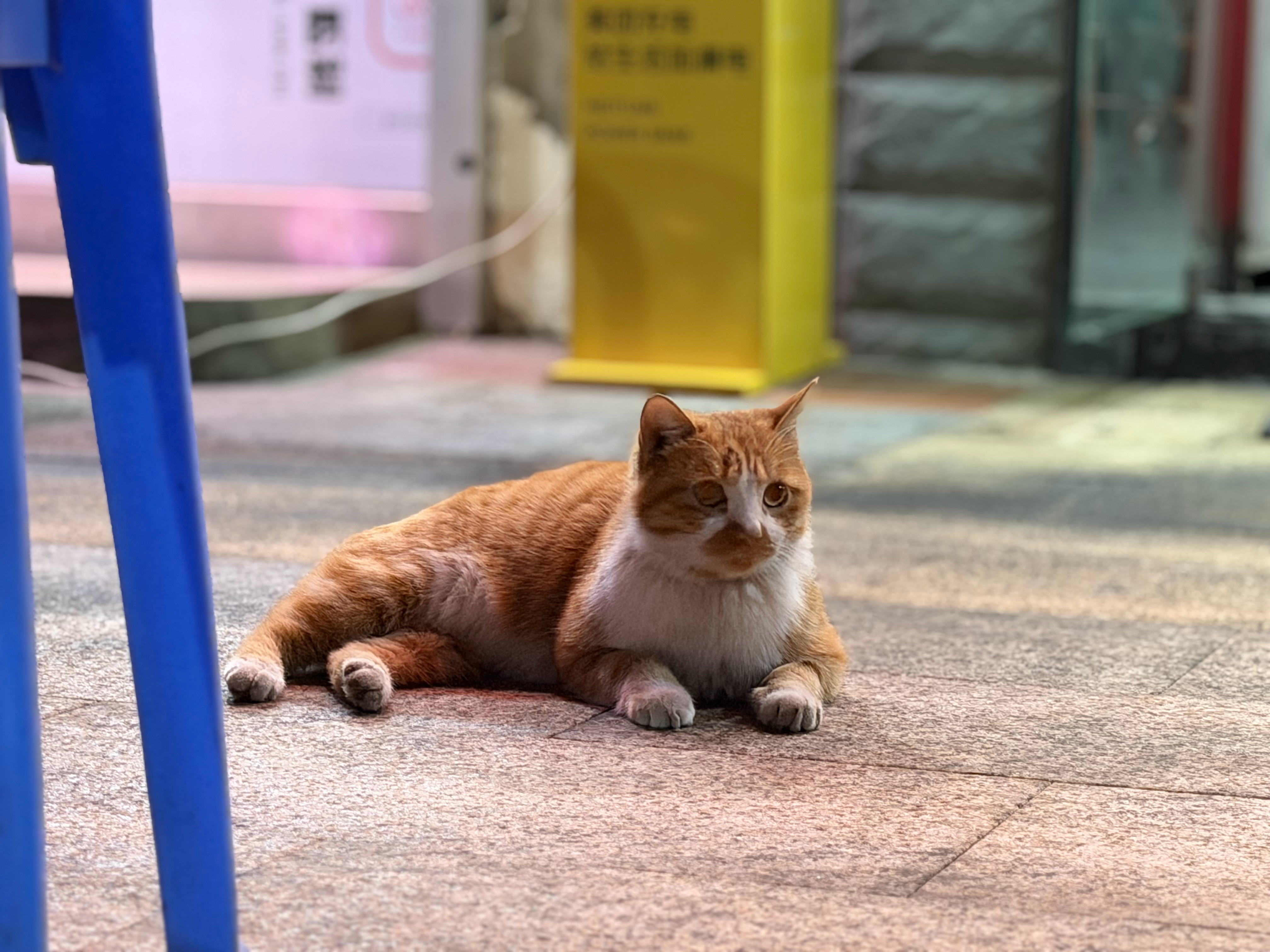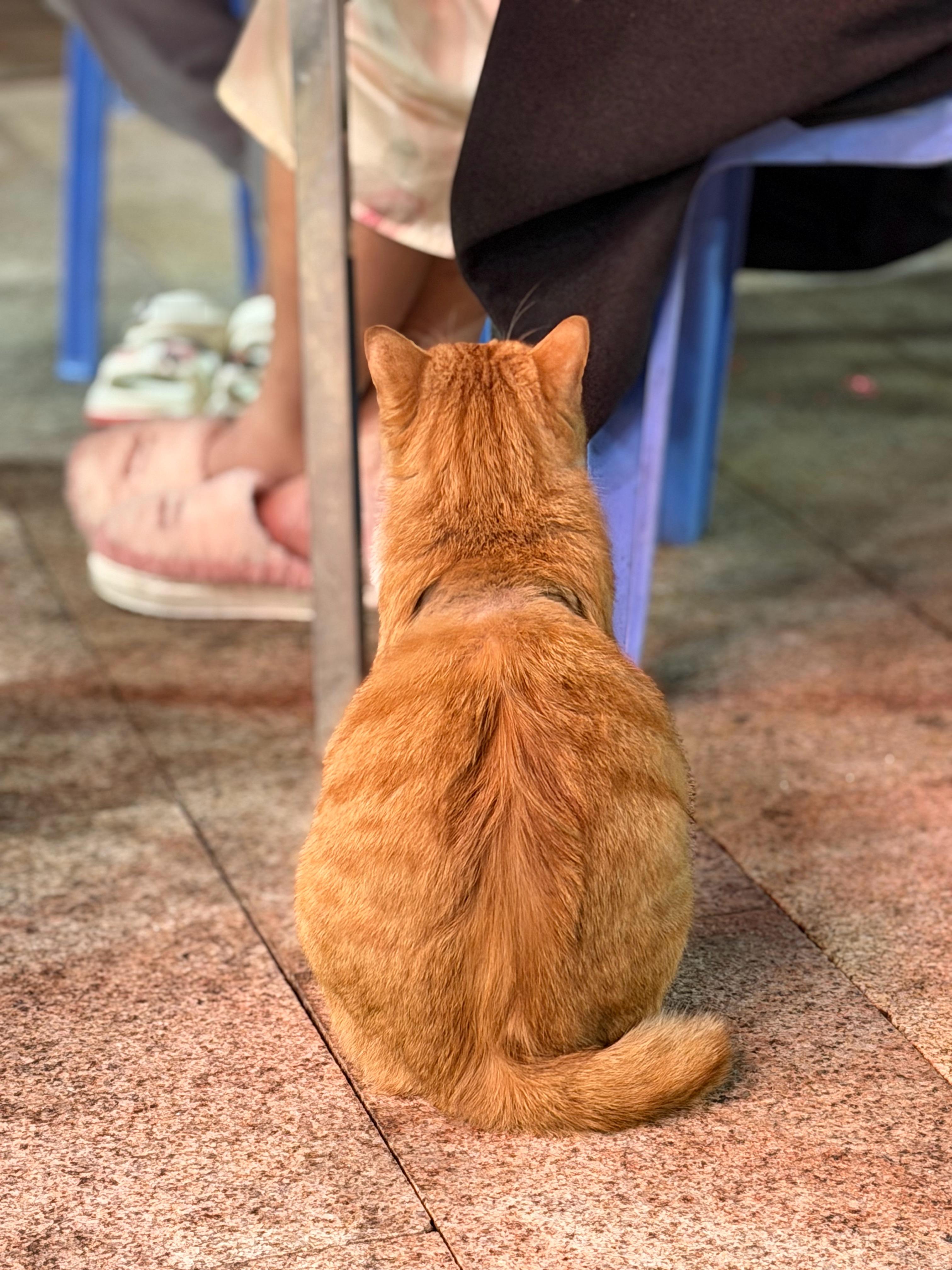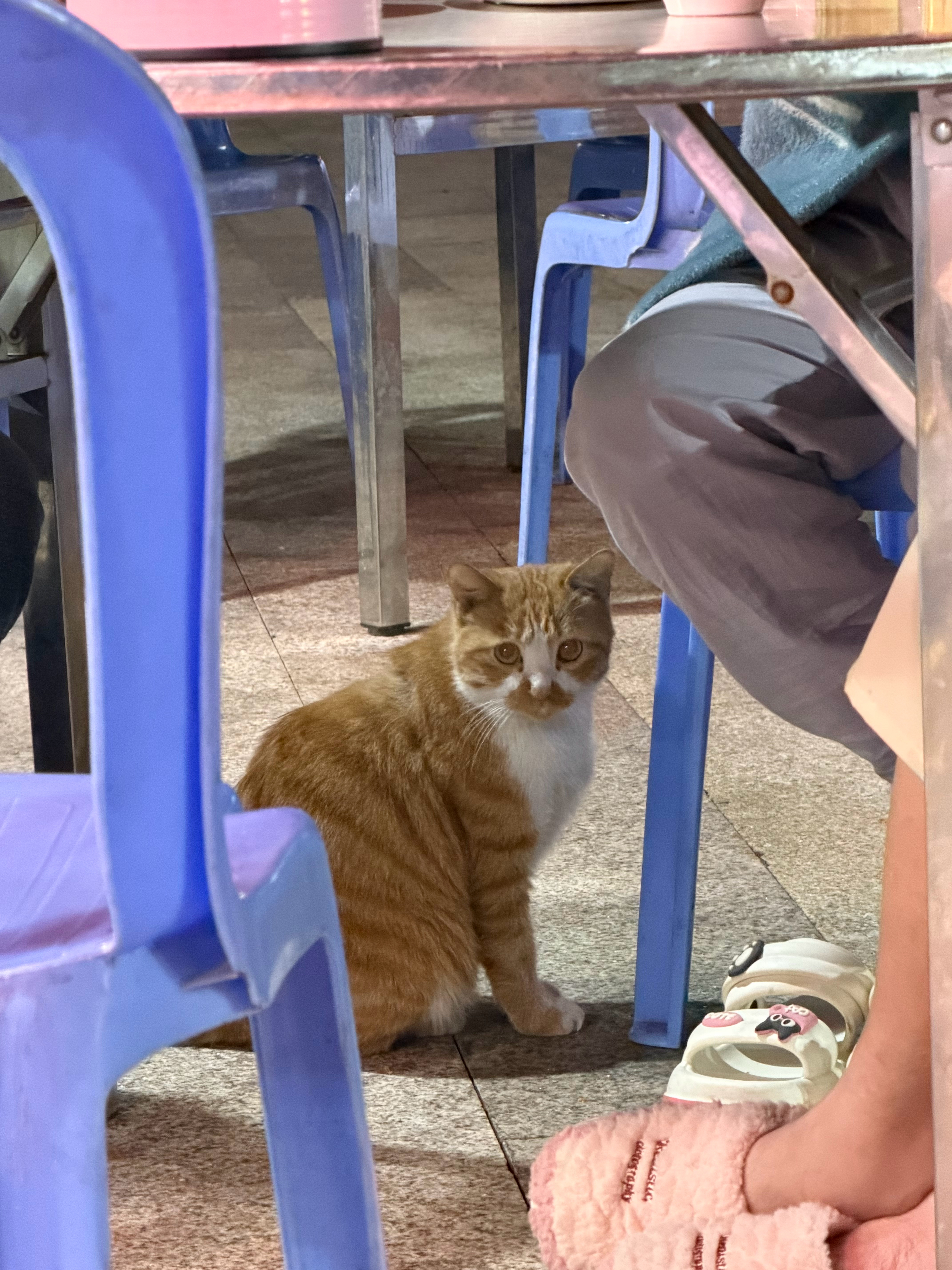 吃饭碰到的一只吃百家饭的橘猫见到人就露肚皮老板说是旁边村民家的猫怪不得一点都不怕人