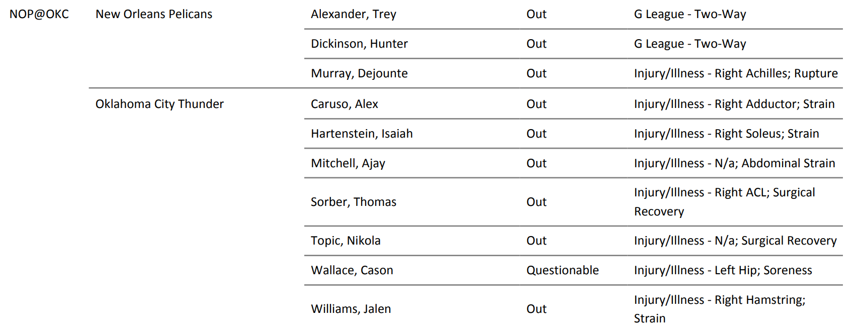 明天上午九点,雷霆将在主场迎战西部副班长鹈鹕,腾讯体育免费直播,你雷会穿蓝色球衣,对手则是红色球服。根据伤病报告,卡森·华莱士(髋部酸痛)出战成疑,杰伦威廉姆斯、哈滕、米切尔、卡鲁索、托皮奇和索伯依旧因伤缺席。鹈鹕除了两名双向球员和长期伤停的德章泰·穆雷,其余球员均能出战。雷霆目前八连胜鹈鹕,但需要注意的是对手近来接连战胜了灰熊和马刺。编辑by蓝色狂潮OKC鹈鹕vs雷霆猛龙战胜雷霆雷霆