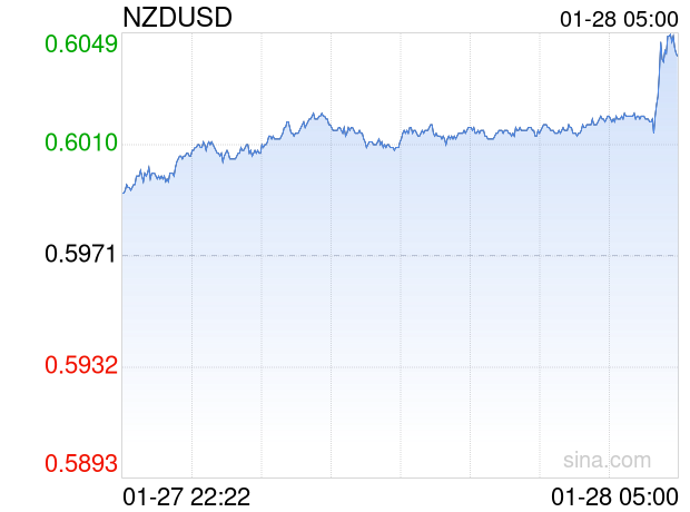 新浪外汇消息2026年01月28日,截至05时01分,外汇市场上新西兰元兑美元汇率突破1新西兰元兑换0.6041美元。涨幅为1.1723%