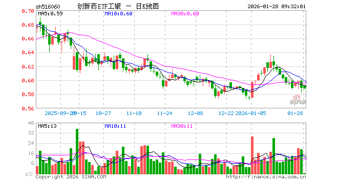 1月28日,创新药ETF工银(516060)开盘涨0.51%,报0.592元。创新药ETF工银(516060)重仓股方面,药明康德开盘涨0.22%,恒瑞医药涨0.42%,华东医药涨0.00%,复星医药涨0.04%,科伦药业跌0.16%,百济神州跌0.26%,长春高新涨0.02%,康龙化成涨0.10%,泰格医药涨0.14%,艾力斯跌0.41%。