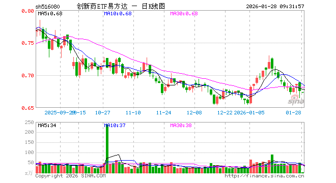 1月28日,创新药ETF易方达(516080)开盘跌0.15%,报0.674元。创新药ETF易方达(516080)重仓股方面,药明康德开盘涨0.22%,恒瑞医药涨0.42%,华东医药涨0.00%,复星医药涨0.04%,科伦药业跌0.16%,百济神州跌0.26%,长春高新涨0.02%,康龙化成涨0.10%,泰格医药涨0.14%,艾力斯跌0.41%。