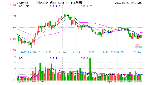 1月28日,沪深300红利ETF建信(512530)开盘涨0.06%,报1.555元。沪深300红利ETF建信(512530)重仓股方面,中远海控开盘涨0.14%,山西焦煤涨0.00%,陕西煤业涨0.19%,藏格矿业涨0.00%,兖矿能源跌0.22%,四川路桥涨0.00%,中国神华涨0.37%,上海银行涨0.22%,兴业银行跌0.05%,华夏银行涨0.16%。