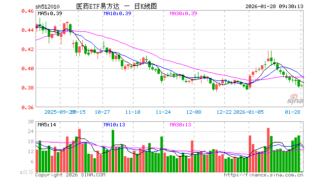 1月28日,医药ETF易方达(512010)开盘涨0.26%,报0.382元。医药ETF易方达(512010)重仓股方面,恒瑞医药开盘涨0.42%,药明康德涨0.22%,迈瑞医疗跌0.03%,联影医疗涨0.38%,爱尔眼科跌0.09%,片仔癀涨0.89%,云南白药跌1.20%,新和成跌0.51%,华东医药涨0.00%,复星医药涨0.04%。