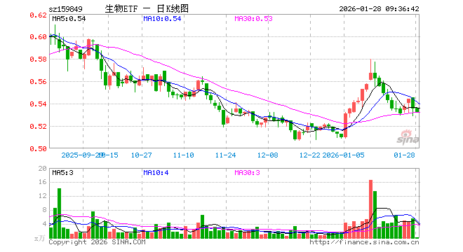 1月28日,生物科技指数ETF(159849)开盘涨0.19%,报0.536元。生物科技指数ETF(159849)重仓股方面,药明康德开盘涨0.22%,恒瑞医药涨0.42%,迈瑞医疗跌0.03%,复星医药涨0.04%,上海莱士跌0.16%,百济神州跌0.26%,长春高新涨0.02%,康龙化成涨0.10%,泰格医药涨0.14%,甘李药业涨0.00%。