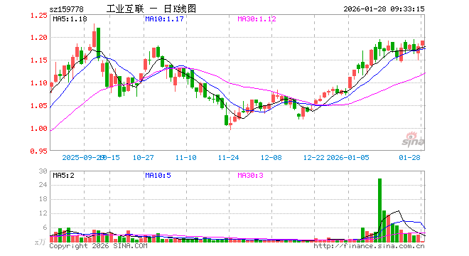 1月28日,工业互联网ETF鹏华(159778)开盘涨0.08%,报1.180元。工业互联网ETF鹏华(159778)重仓股方面,汇川技术开盘跌0.56%,比亚迪跌0.01%,兆易创新涨2.15%,北方华创涨0.95%,工业富联涨2.18%,宁德时代跌0.45%,科大讯飞涨0.60%,海康威视涨0.19%,豪威集团跌0.05%,国电南瑞涨0.35%。