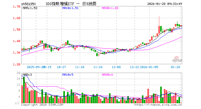 1月28日,500指数增强ETF(561950)开盘跌0.20%,报1.524元。500指数增强ETF(561950)重仓股方面,高德红外开盘涨0.05%,完美世界跌0.58%,中科创达跌0.04%,深信服涨3.59%,乐普医疗跌0.49%,爱玛科技涨0.03%,均胜电子跌0.47%,吉比特跌0.53%,视源股份跌0.46%,物产中大跌0.34%。