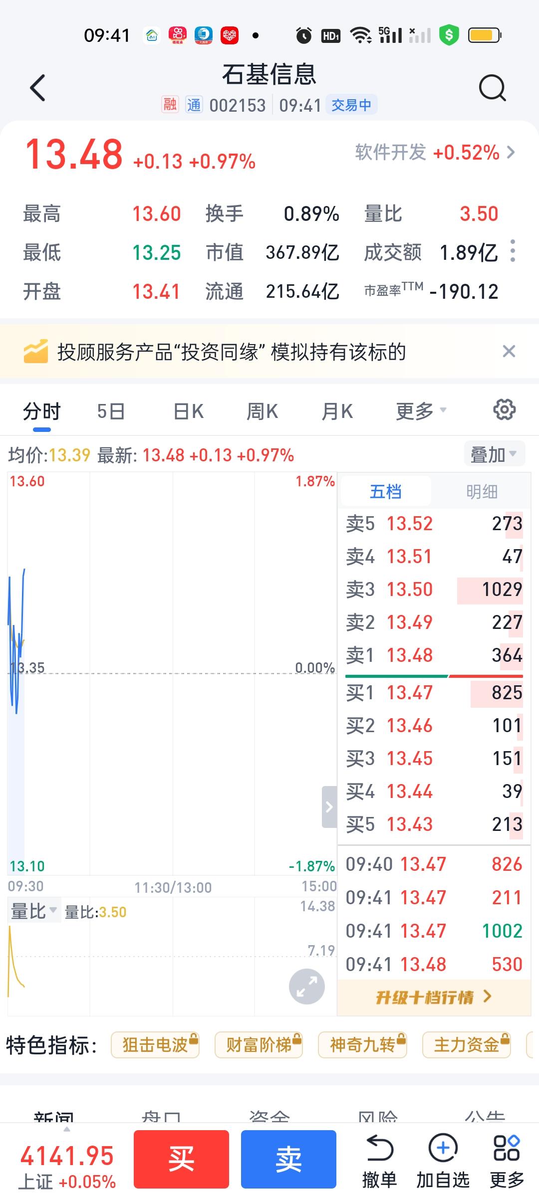 还是倒T模式,把昨天12.96买进的200股在13.46这个价格出了,挣了100元,本来挂的13.66,但是我怕到不了这个高度改成13.46马上成交了,希望不要留下遗憾。然后我又在20日线13.12这个位置挂了200股,能买进就买进,不能买进也不做它了,能不能买进随意!这个股也挣了近300了,也能满意了。