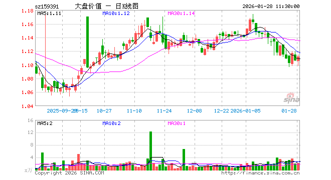 1月28日,截止午间收盘,大盘价值ETF博时(159391)涨0.54%,报1.112元,成交额235.32万元。大盘价值ETF博时(159391)重仓股方面,中国平安截止午盘跌0.64%,招商银行跌0.13%,美的集团跌0.57%,兴业银行跌1.01%,工商银行涨0.14%,农业银行跌0.73%,伊利股份跌0.61%,交通银行跌0.15%,格力电器跌1.41%,中国神华涨1.38%。