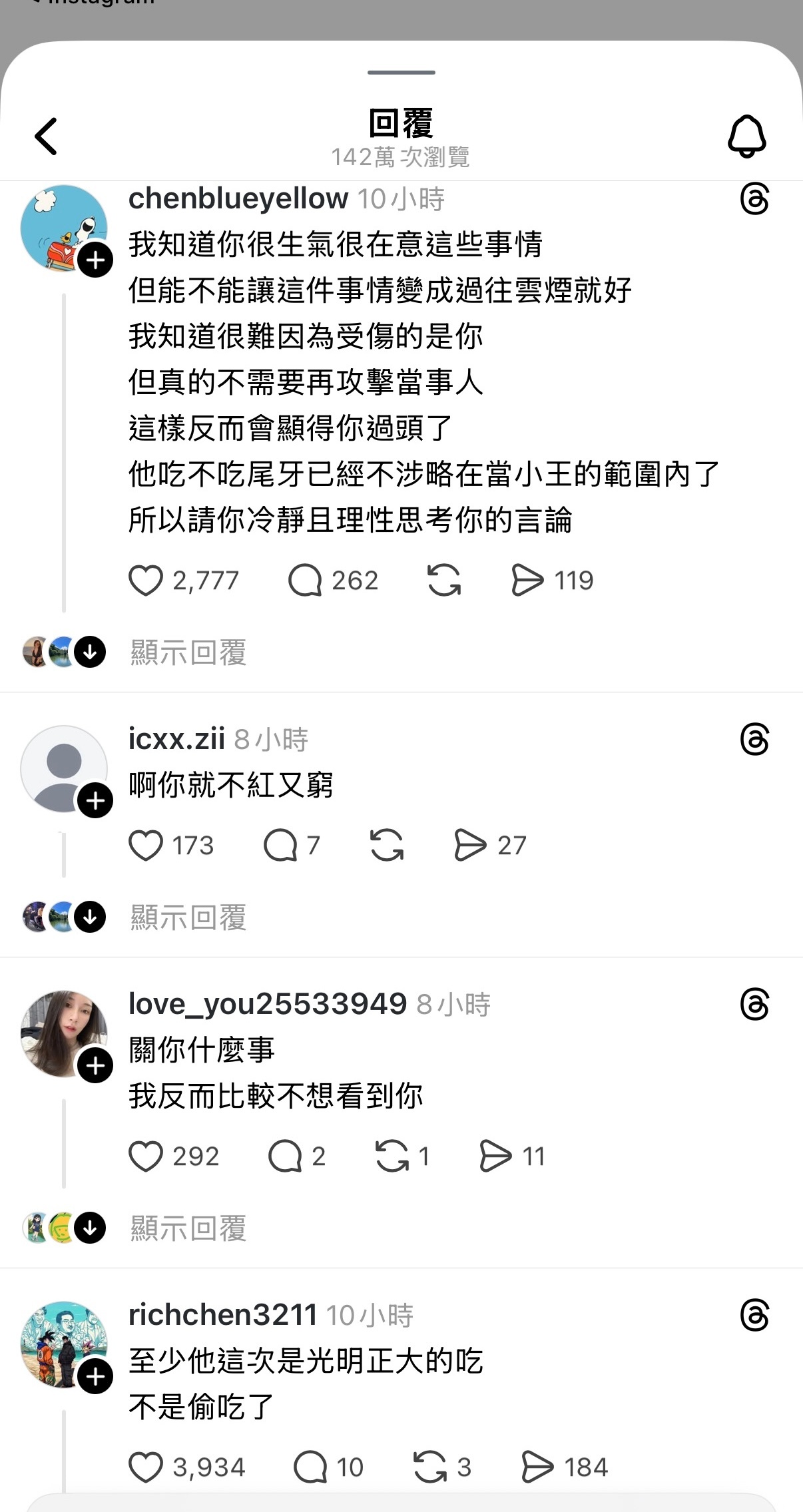 范姜彦丰在王子新闻底下留言「还要脸吗」引发热议!昨天王子吃公司尾牙上了新闻,出轨新闻原配范姜彦丰在下面留言:「还要脸吗」,目前有九万按赞,说王子敢偷吃活该一辈子被骂啦等!不过也有其他声音,认为王子偷吃粿粿与参加公司尾牙是两码子事,喊话范姜彦丰不要再攻击当事人,「这样反而显得你过头了」、「无限上纲超不成熟」、「要全世界每天都同情你吗?」、「放下了吧」等。