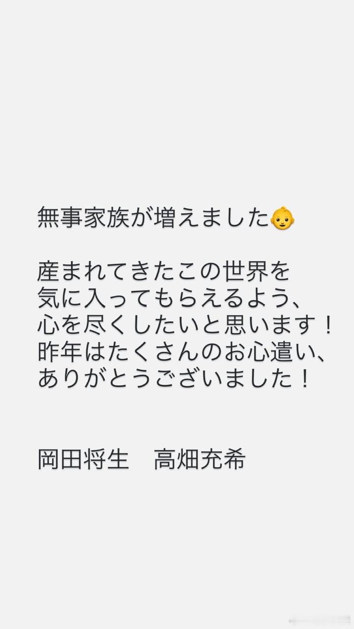 高畑充希&冈田将生第一子诞生!恭喜!