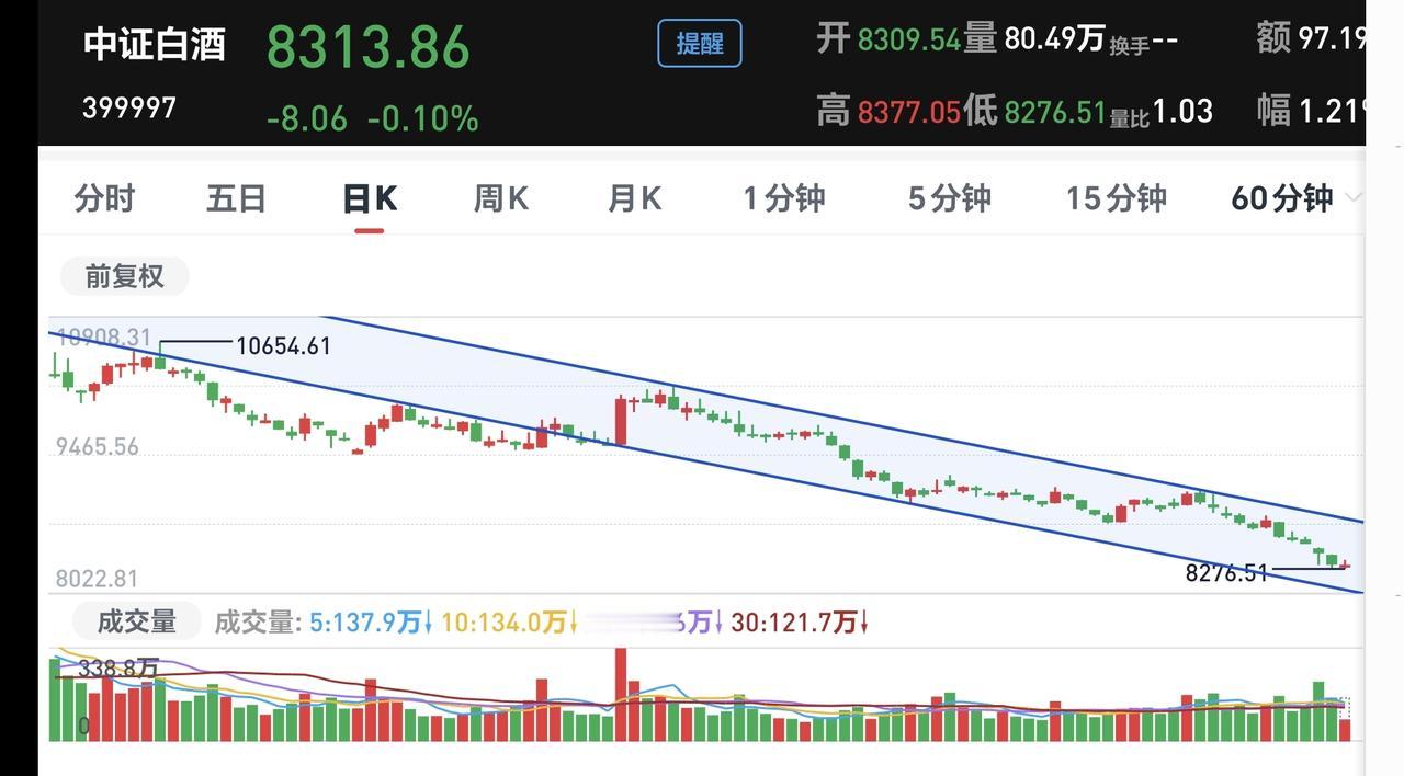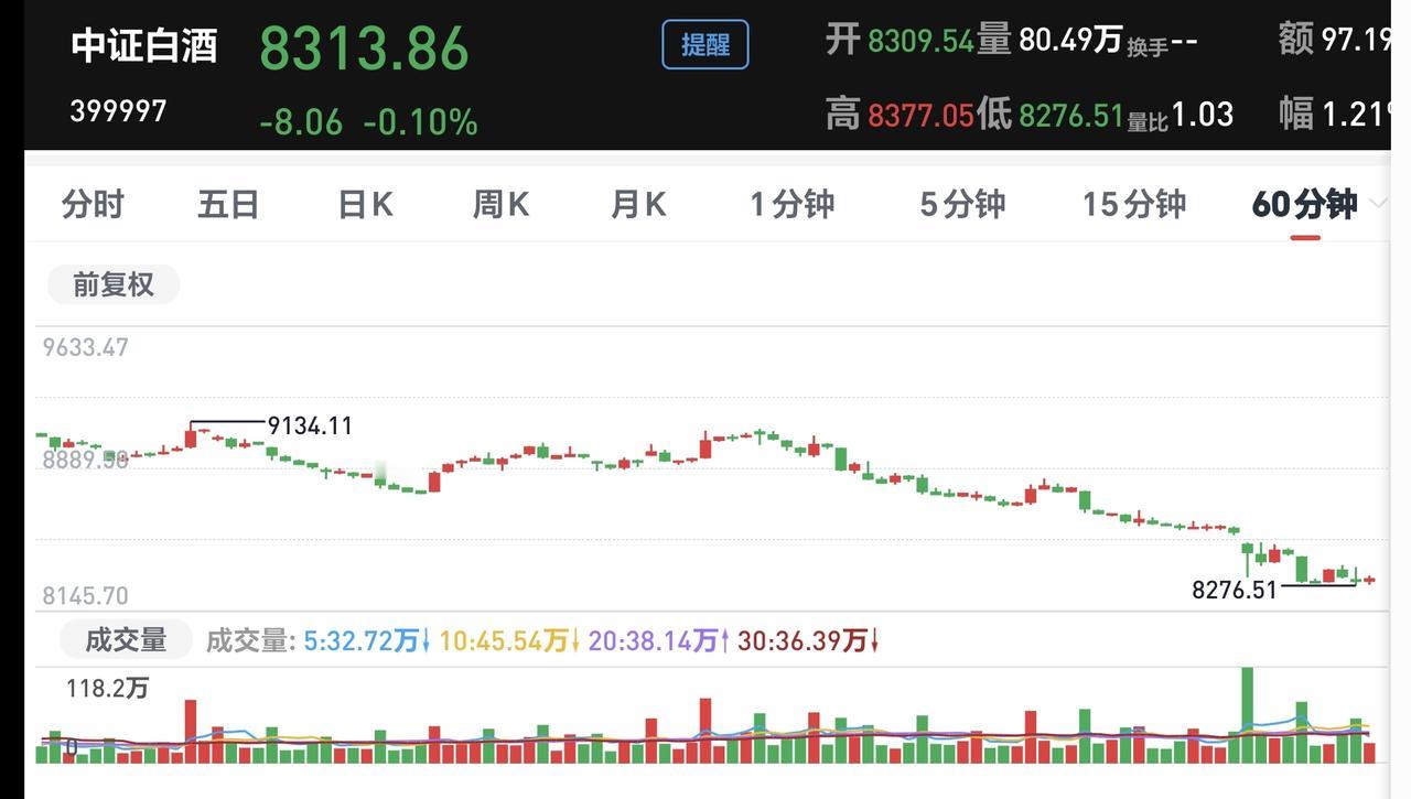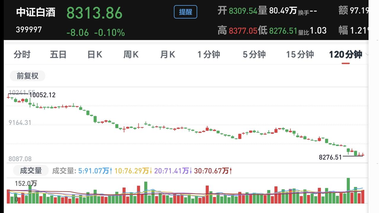 基金:白酒板块闲钱投入,风水轮流转,现在是地板价,性价比超高,想挣快钱,就别买白酒。 这是一位朋友的留言,谢谢这位朋友。 每个人的投资理念不一样,操作方式肯定也就不一样,没有绝对的对与错之分,短线的人和长线的人操作方式不一样,想挣快钱的人和想挣慢钱的人,操作方式不一样,资金量小的人和资金量大的人,操作方式不一样,急性子的人与慢性子的人,操作方式不一样,与智商和文化程度高低没有关系。 我晚饭以后在小区内散步,经常看到有人在翻垃圾箱,我看看他,他看看我,我们两个人的想法都是不一样的,我想的是:翻垃圾箱又脏又累,还翻不出几个钱,没有必要干这个。他想的是:垃圾箱里面这么多钱,不挣白不挣,不挣就是傻。你能说我们两个人的想法有错吗,两个人的想法都是正确的。 持有的基金中,估值上涨幅度最大的三个板块是:兴全合宜,5G板块,证券板块,下跌幅度最大的三个板块是:可控核聚变板块,AI应用板块,新能源汽车板块,估值整体上涨了1443元。 持有的白酒板块基金盘中估值下跌了0.09%,今天的下跌幅度很小,我们来看一下这个板块有没有止跌企稳。 看下面的截图4,这是白酒板块60分钟K线图,60分钟级别最后一根K线是阳线,但到现在为止,还没有看到这个级别的止跌企稳,因为,倒数第二根K线是阴线,是放量下跌,最后一根K线是阳线,是缩量上涨,如果是止跌企稳的话,应该是缩量下跌,放量上涨。 看下面的截图5,这是白酒板块120分钟K线图,最后两根K线都是阳线,最后一根阳线是放量的,但放量以后并没有上涨,这也说明白酒板块120分钟级别并没有止跌企稳。 看下面的截图6,这是白酒板块日K线图,最后一根阳线也是上涨的,成交量并没有放大,这也说明白酒板块日线级别并没有止跌企稳。 白酒板块周线级别和月线级别就更不用看了,他们都是处于下跌通道当中,都是处于下跌趋势当中,更没有止跌企稳,只有在日线级别止跌企稳以后,才可以观察周线级别和月线级别有没有止跌企稳。 小级别的止跌企稳,可以引发大级别的止跌企稳,60分钟级别的止跌企稳,会带动120分钟级别的止跌企稳,120分钟级别的止跌企稳,可以带动日线级别的止跌企稳。 所以,我们可以先从60分钟级别观察,如果看到60分钟级别有放量大阳线,或者是看到60分钟级别有放量的长下影线阳K线,那60分钟级别就有可能止跌企稳,在这之前,我们都只是定投就可以了。 花一秒钟点个赞,花30秒写一个评论,点赞和评论是你的美德,谢谢大家的点赞和评论支持。