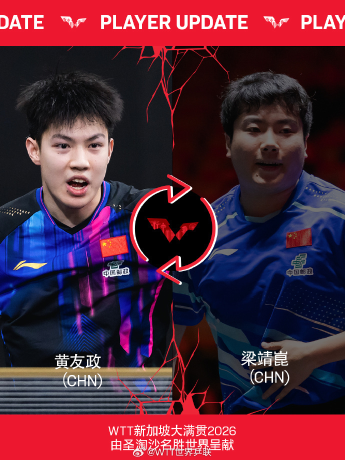 #梁靖崑退赛黄友政递补##梁靖崑退出WTT新加坡大满贯# 🏓️发文宣布梁靖崑退出#WTT新加坡大满贯2026#,黄友政递补参赛。