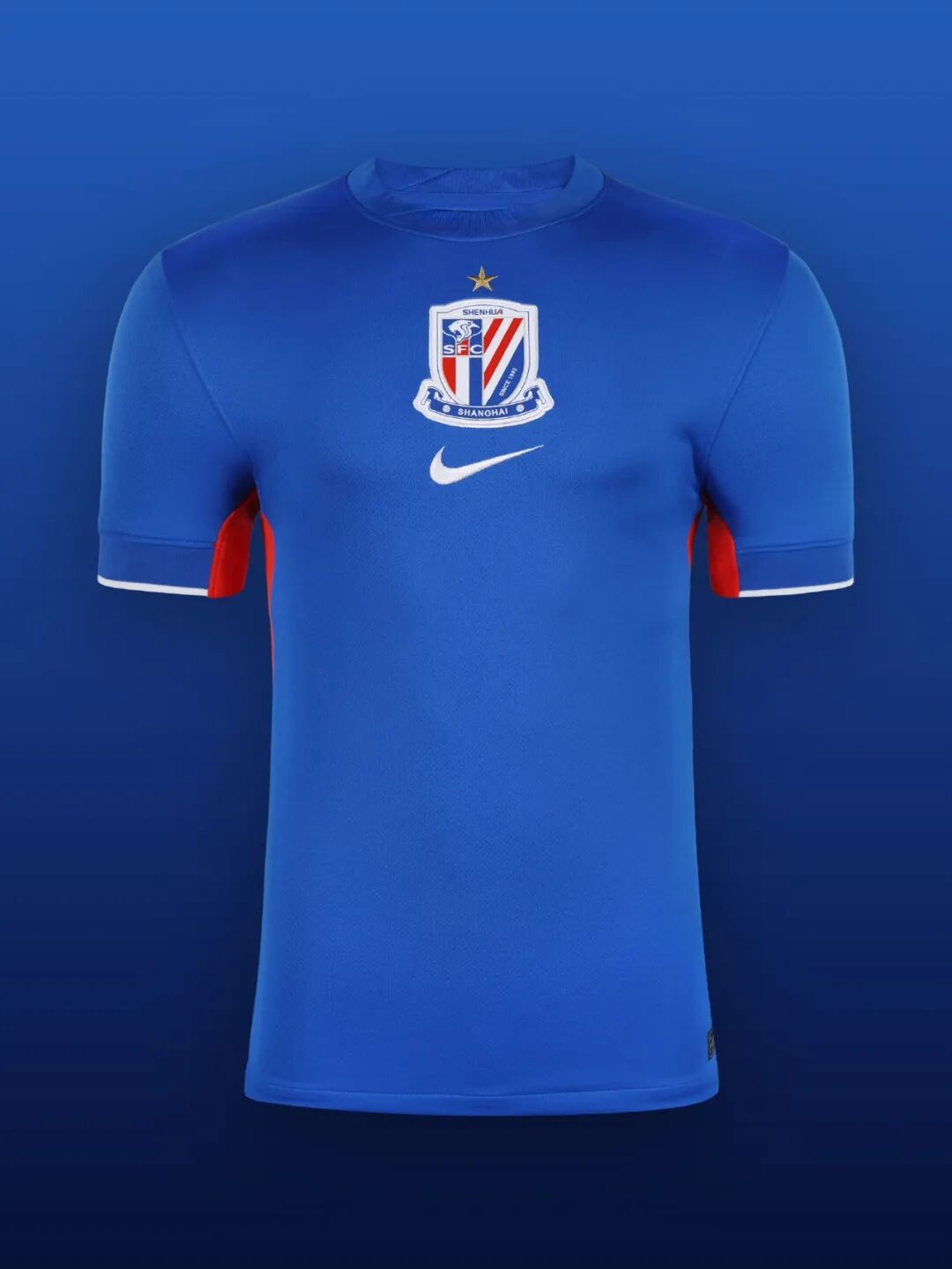 新赛季上海申花的主场球衣以高饱和度的蓝色铺陈整体基调,延续了俱乐部三十余年来深入血脉的传统与基因,并以醒目的红、白两色细节勾勒层次。这一经典配色贯穿于队徽及历代战衣之中,早已成为申花俱乐部最鲜明、最具辨识度的视觉象征。