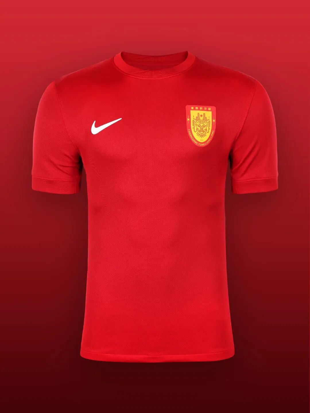新赛季辽宁铁人主场球衣以标志性的‘辽宁红’作为主色,致敬这片土地数十年对于足球不变的炽热和深沉。