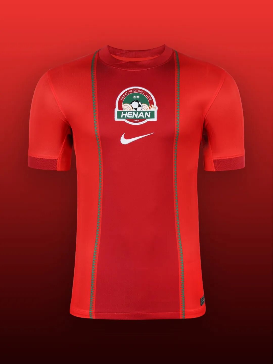 新赛季河南队主场球衣以红色基调与绿色纹理,交织出河岸林木的延展节奏,将城市自然气息与俱乐部精神融入同一画面。