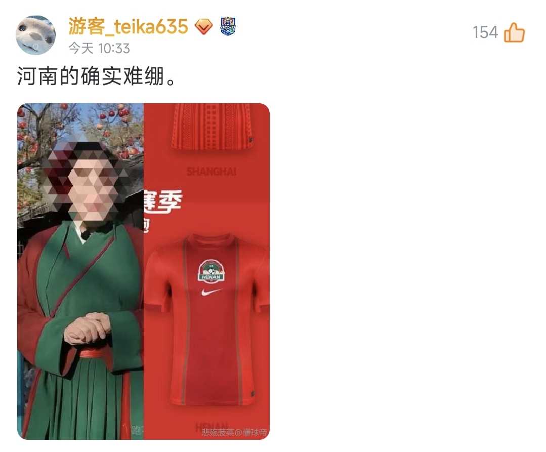 1月28日,运动品牌耐克正式公布2026赛季中超联赛16支俱乐部的球衣,并配文官方设计思路。此次新球衣公布后,社交平台上再度掀起“吐槽大会”,尤其是河南队的球衣被网友戏称为最“难绷”。还有网友表示,期待阿迪达斯的“苏超”球衣设计。