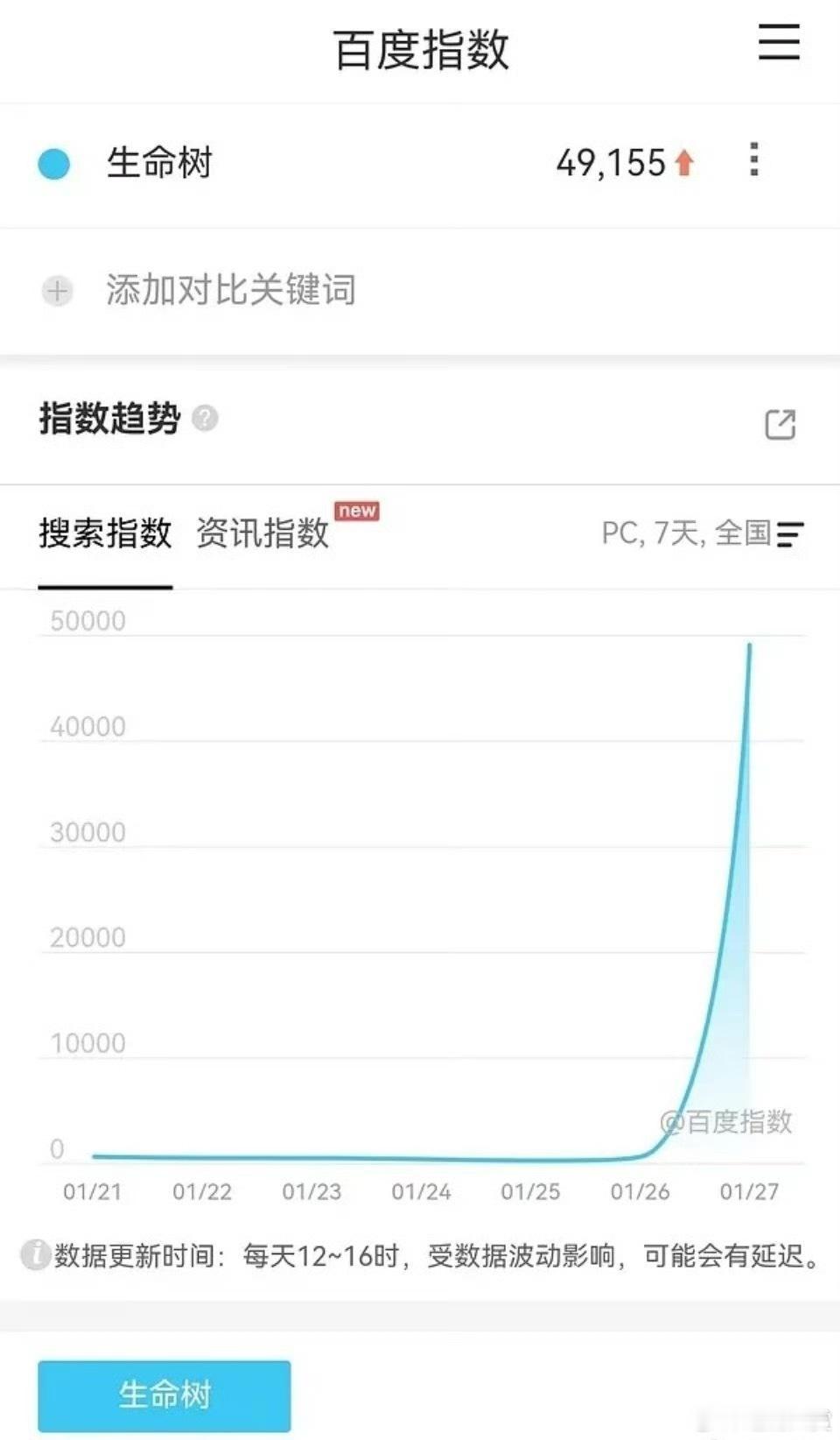 生命树定档百指 《生命树》定档百指激增至6w,其中pc端搜索指数就占了接近5w