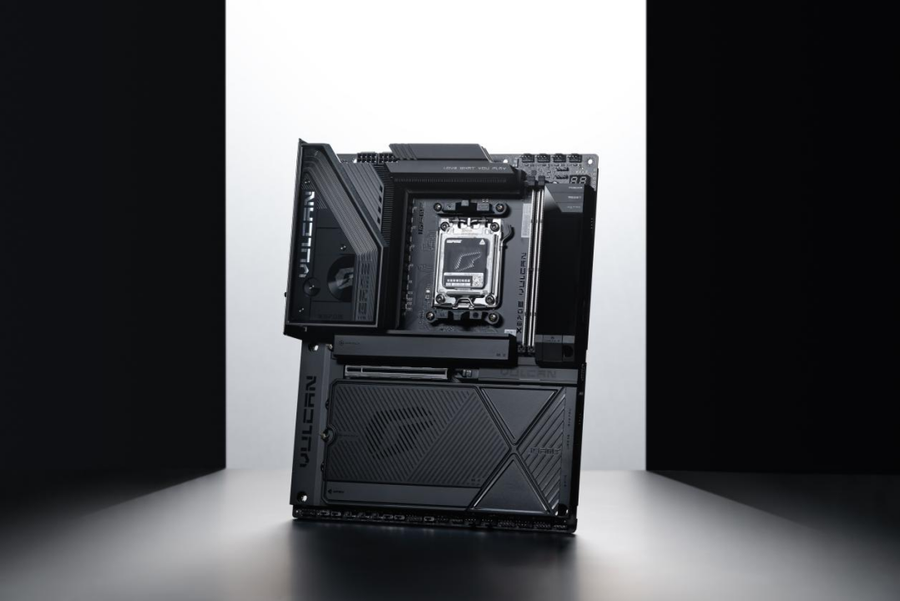 主板延续iGameVulcan系列标志性的赛博风格,以深黑为主色,通过多层金属工艺打造出质感十足的散热装甲。鳍片式散热设计与一体式背板保障稳定运行,VRM区域的合金「智械视窗」与可自定义「智屏」,则为硬件增添了一抹未来科技感。