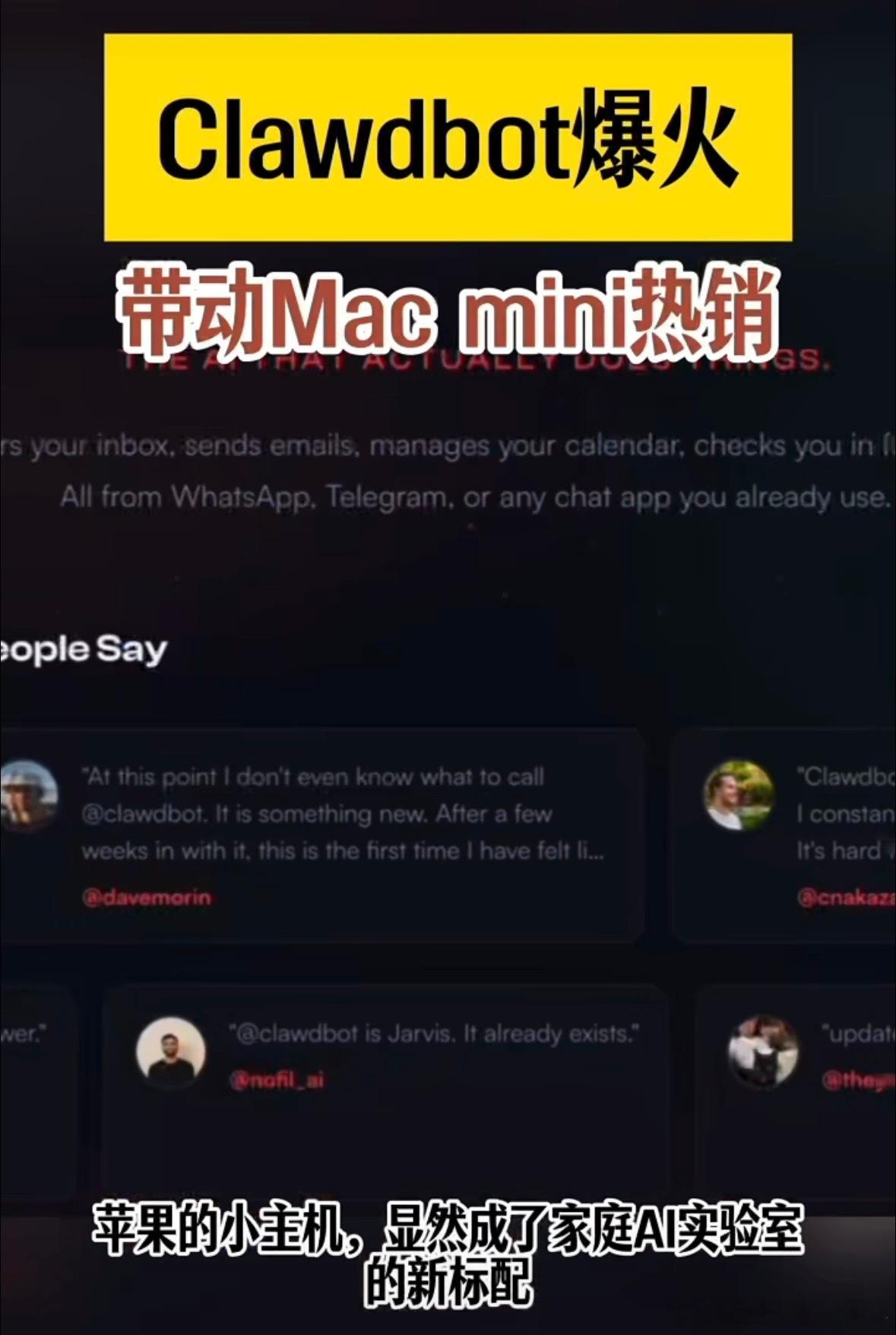 Clawdbot爆火带动Macmini热销Macmini成交量增长超10倍这下吃灰的mini也能变成生产力了!我也来试试!