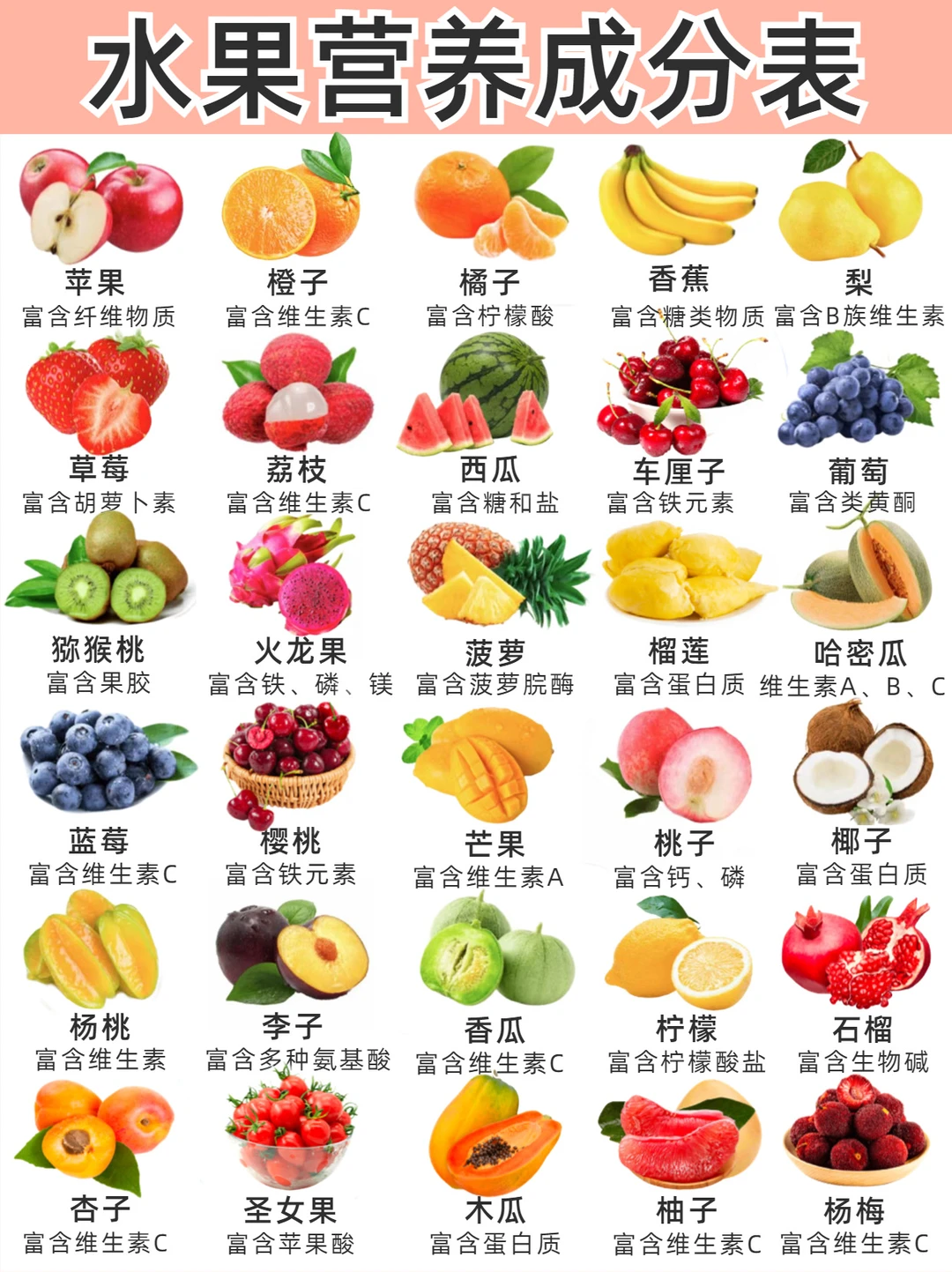 🥑水果营养成分表