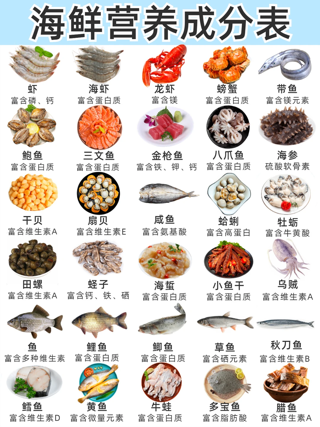 🍤海鲜营养成分表