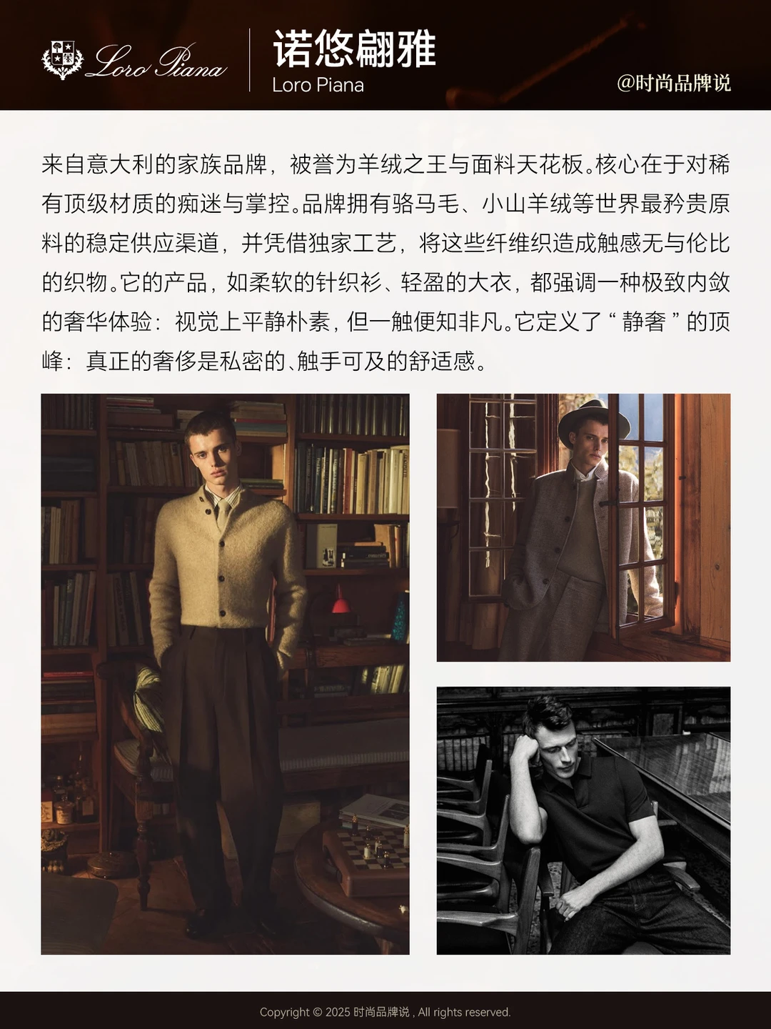 [向右R]代表品牌:Loro Piana诺悠翩雅、ZEGNA杰尼亚、Kiton